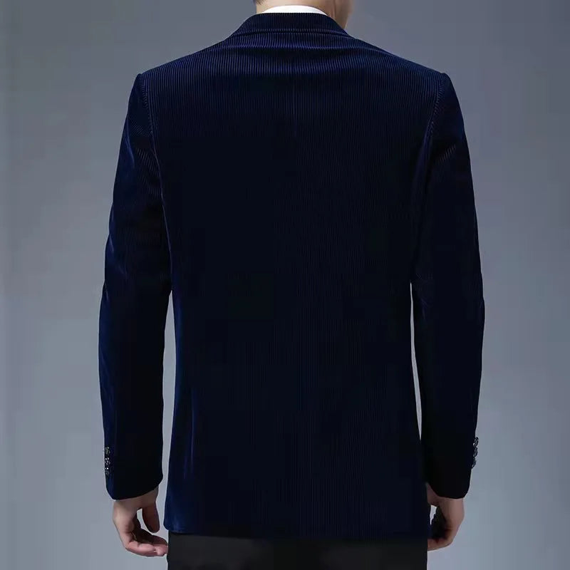 Elegant High-end Style Men Jewel-blue Corduroy blazer