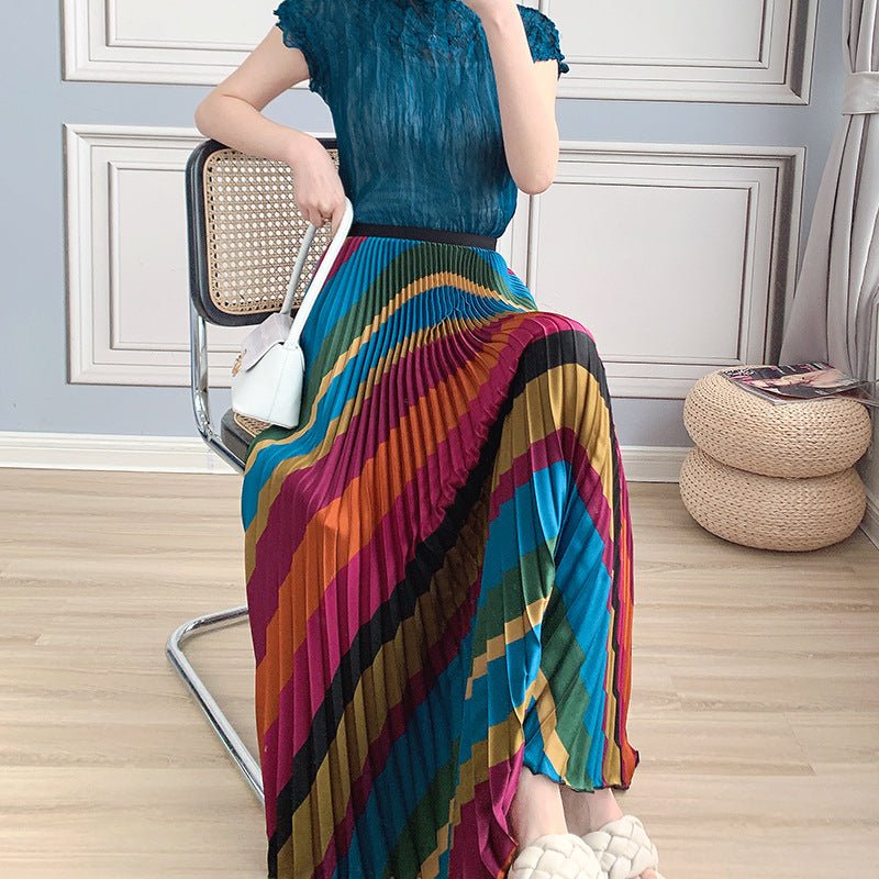 Product Keywords:Rainbow pleated skirt