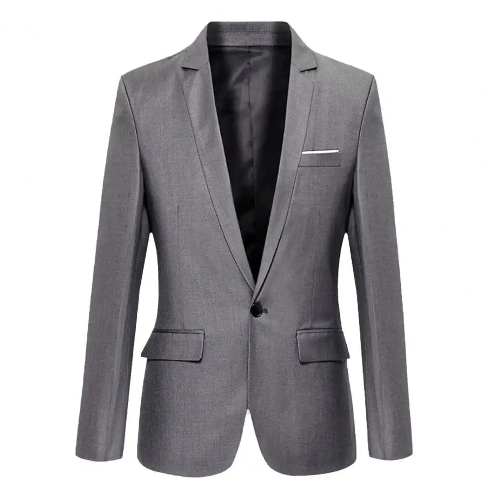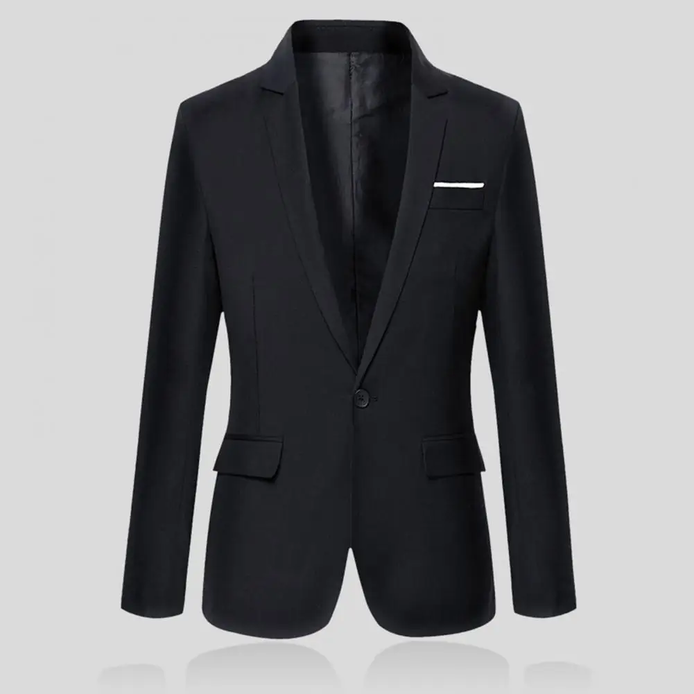 Flap Pockets Long Sleeve Men Blazer Solid Color Single Button Lapel Suit Jacket Male Clothing