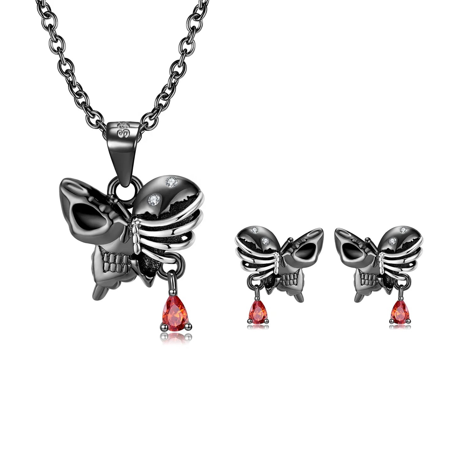 Rib Cage Butterfly Skull Pendant Necklace and Earing Sets Jewelry