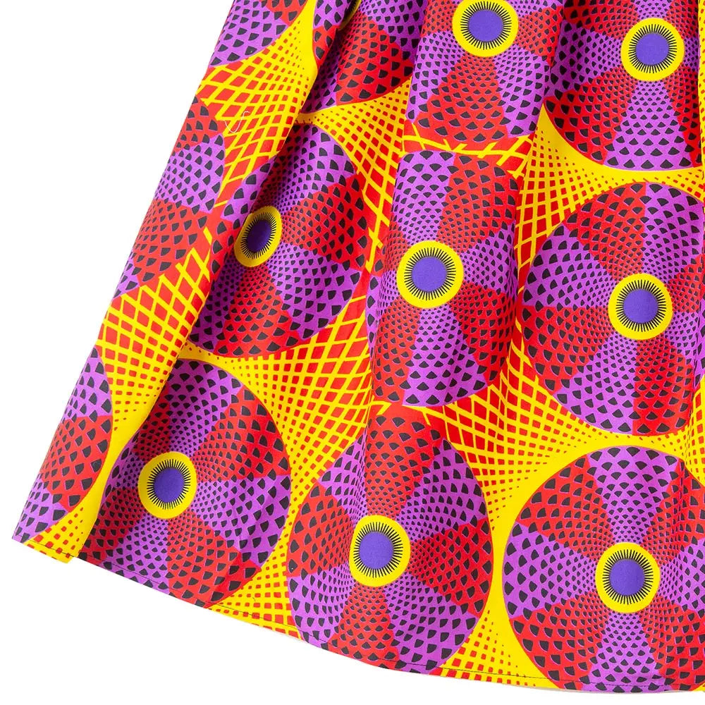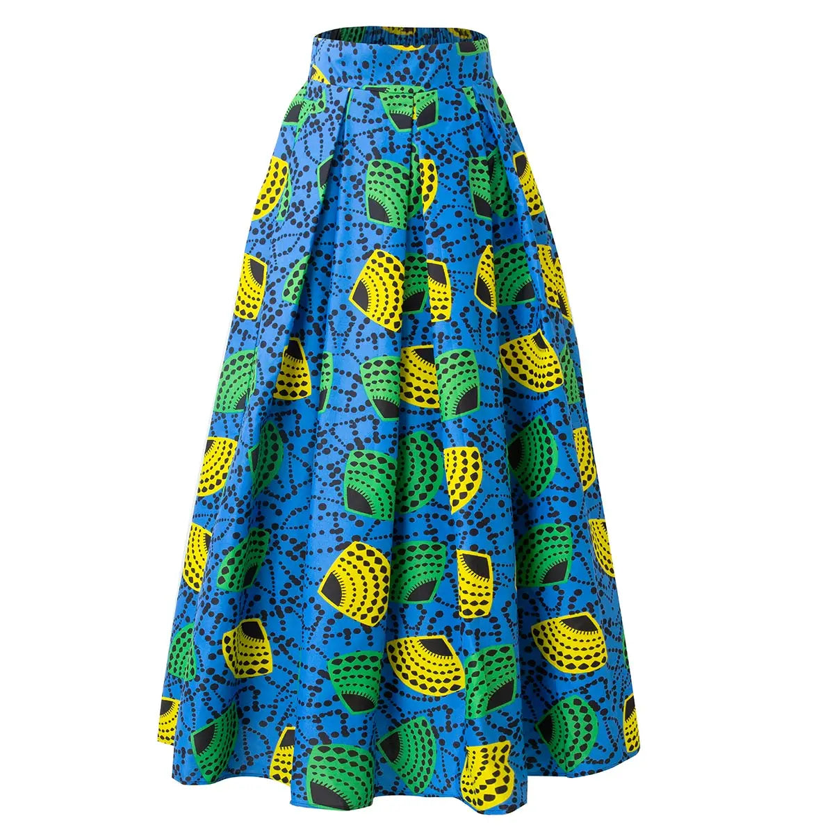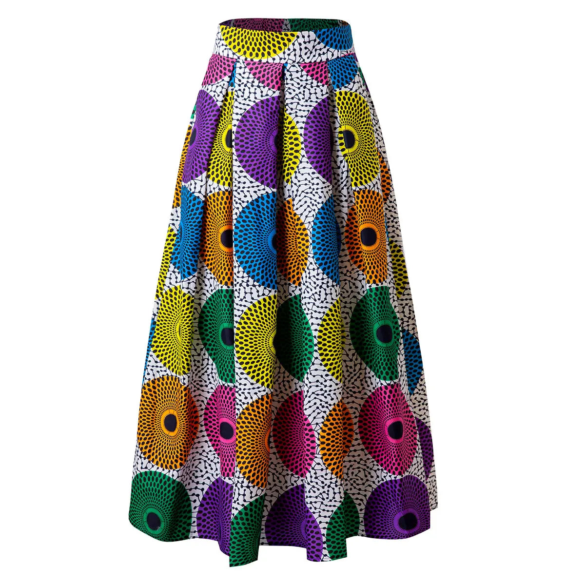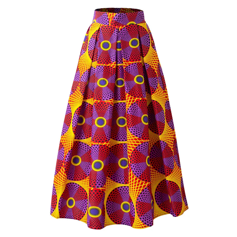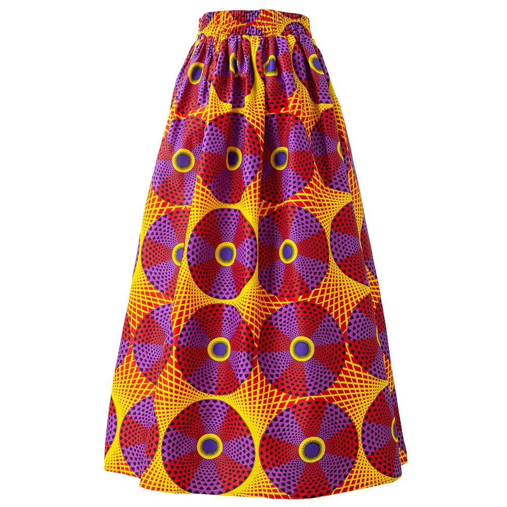 Schoensten Boutique African Wax Circle Pattern Maxi Skirt High Elastics Waistband Women Clothing