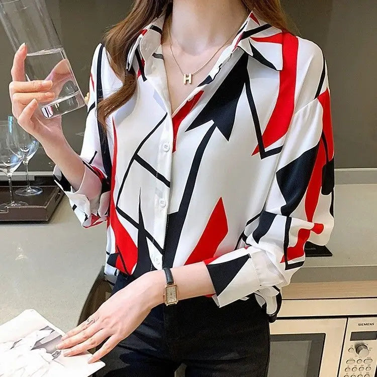 Schoensten Boutique Chiffon Dot Design Long Sleeve Breathable Women Blouses
