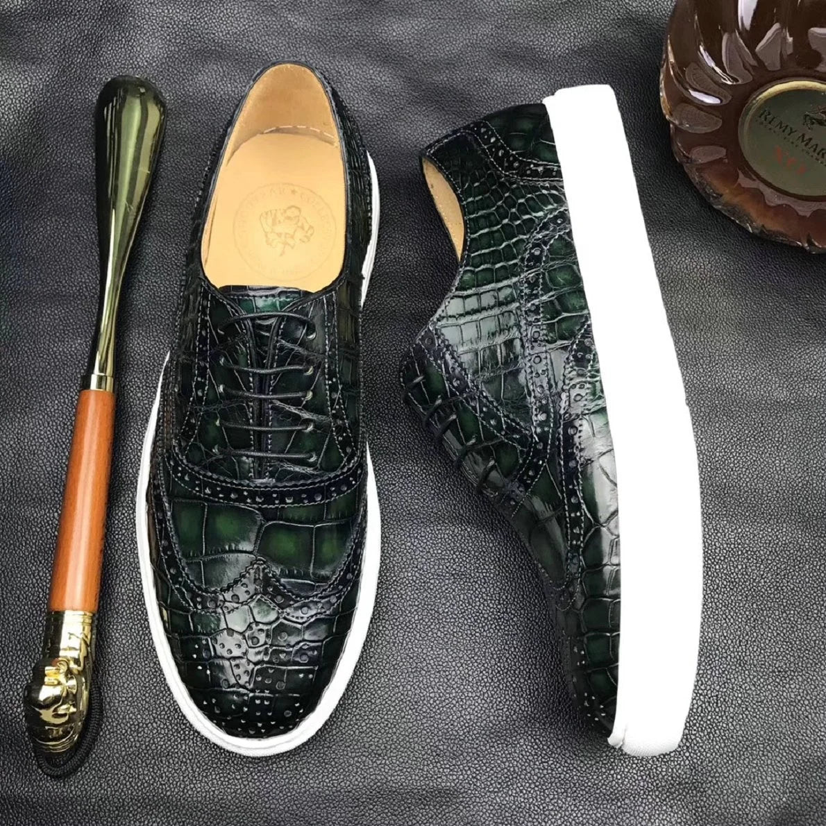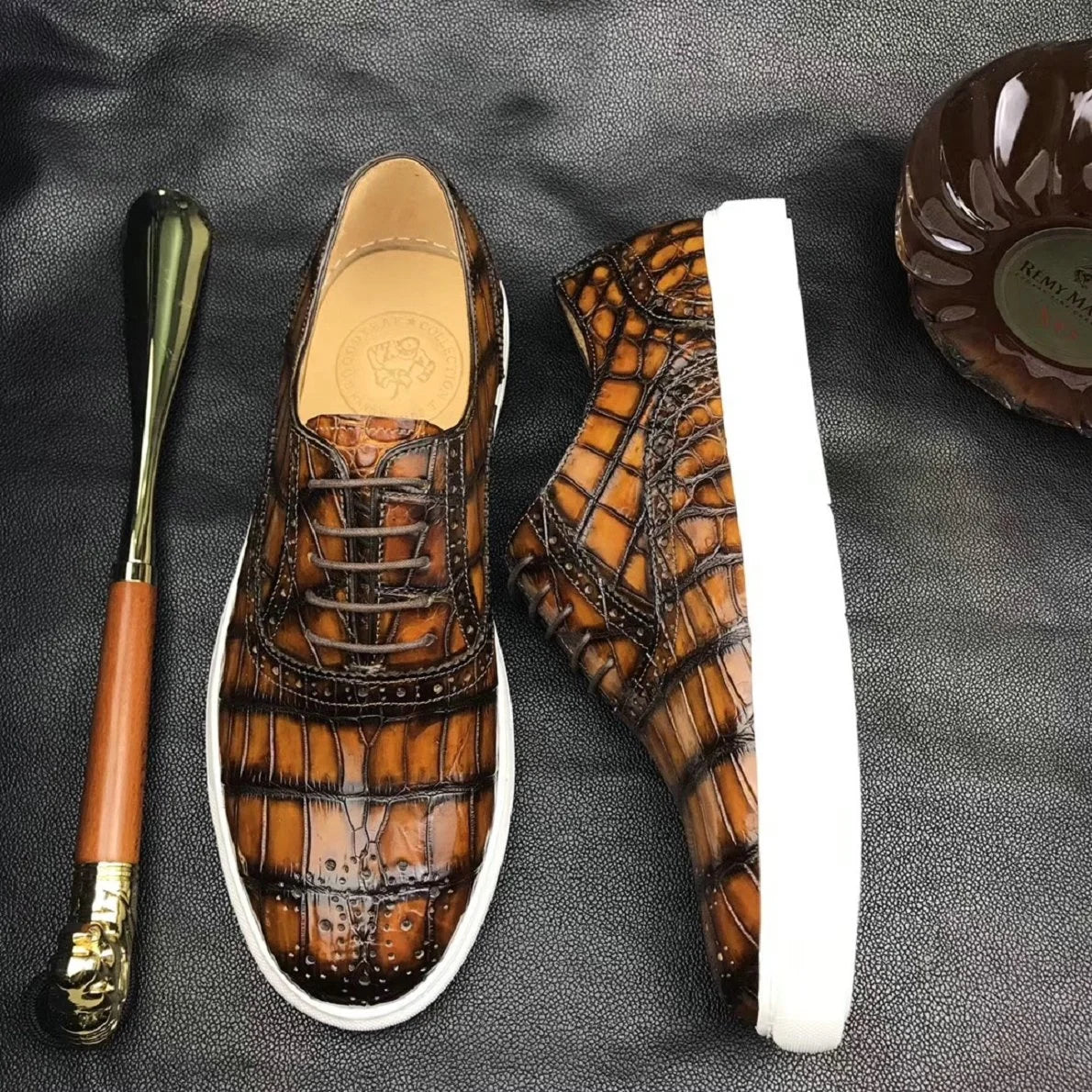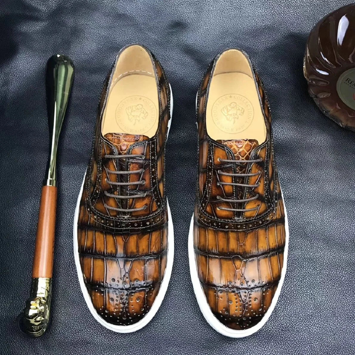 Schoensten Boutique Crocodile Leather Lace-up Casual Shoes for Men