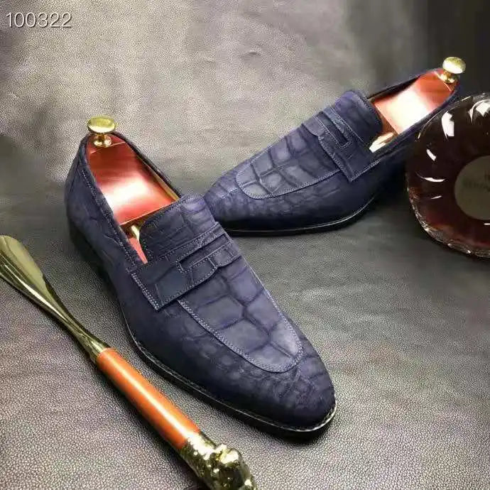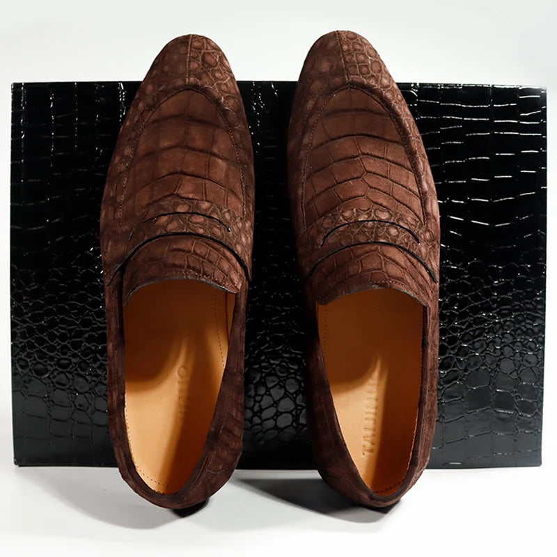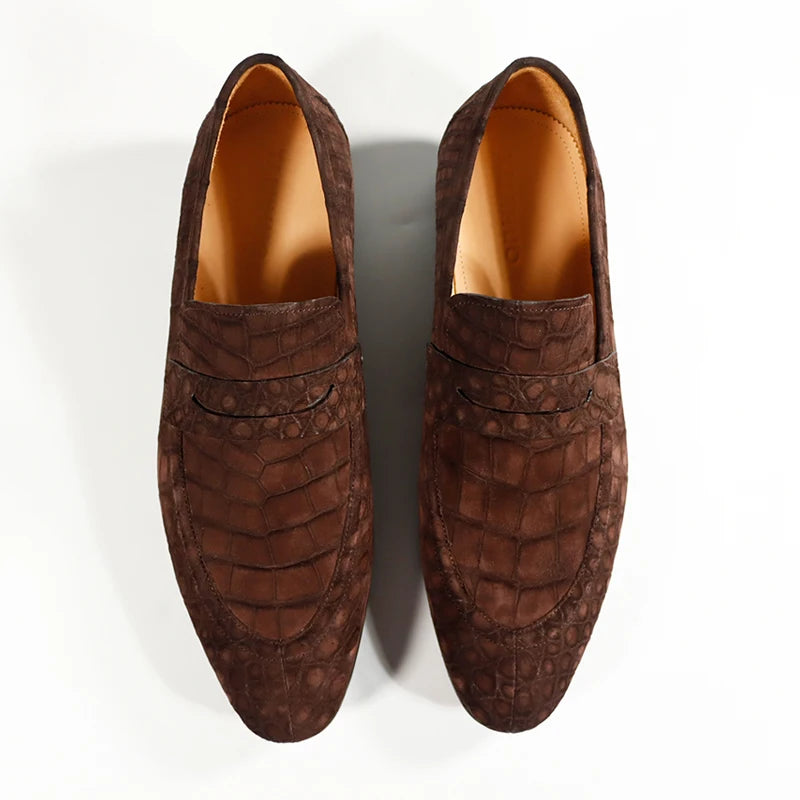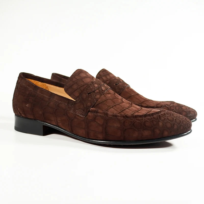 Schoensten Boutique Crocodile Nubuck Leather Loafer Shoes for Men