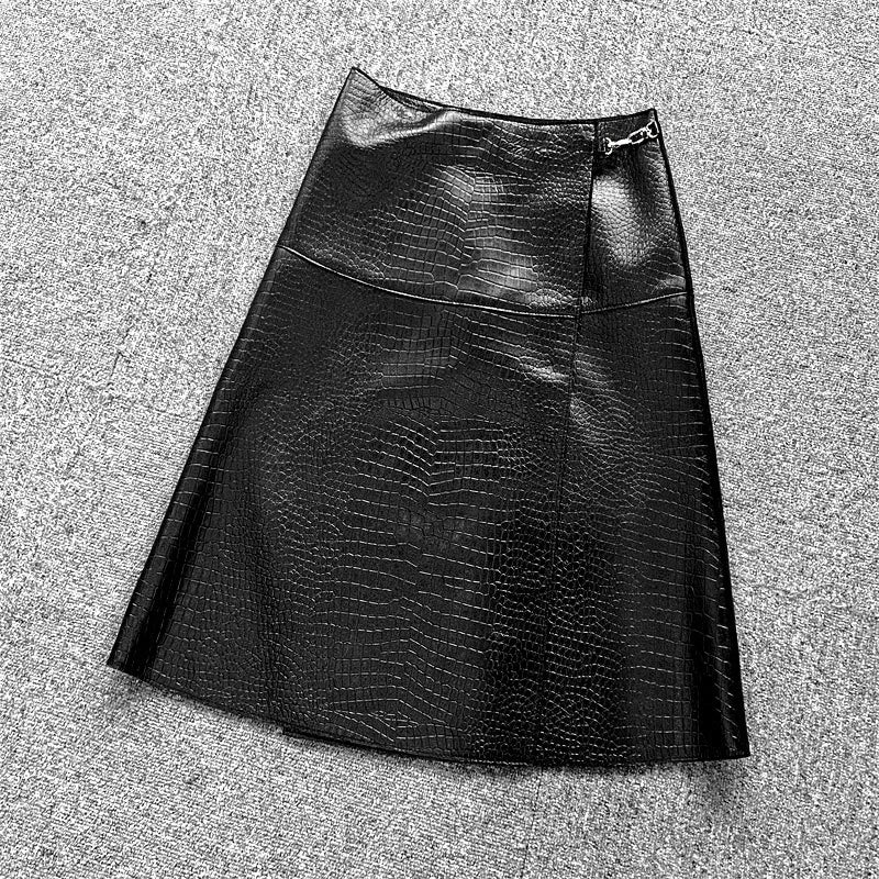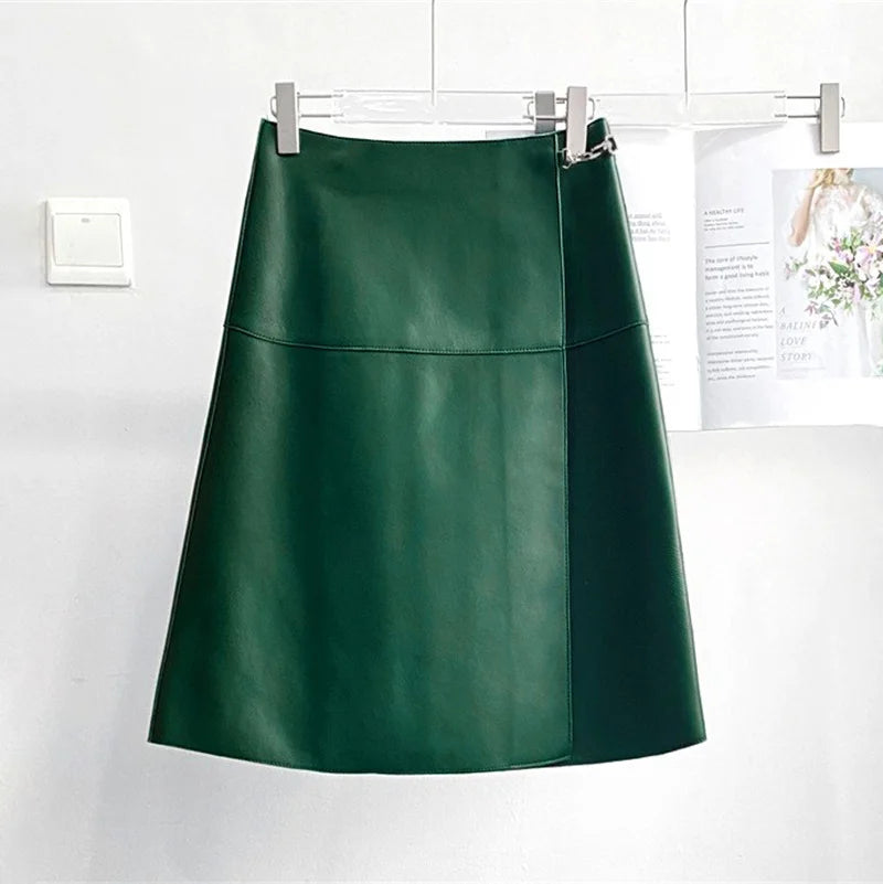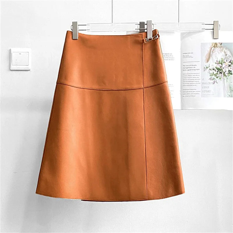 Genuine Sheepskin High Waist Leather Skirt for Women