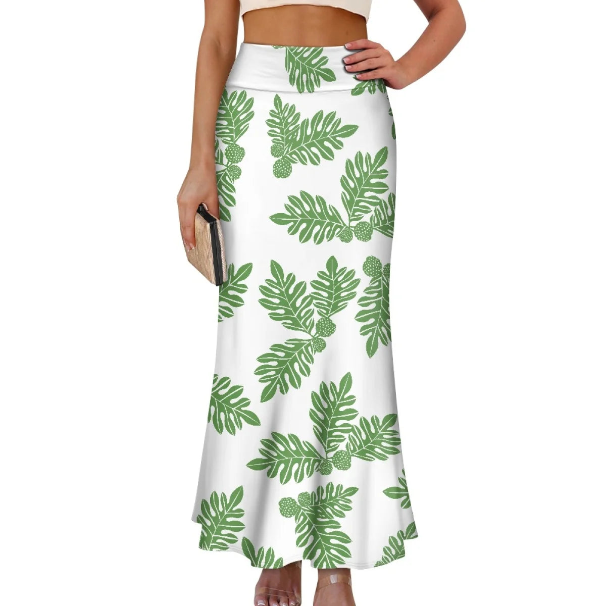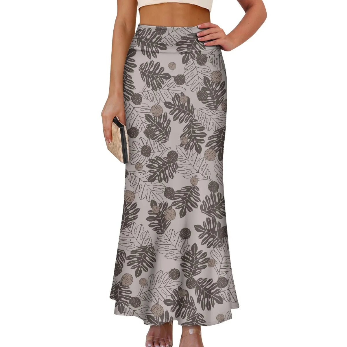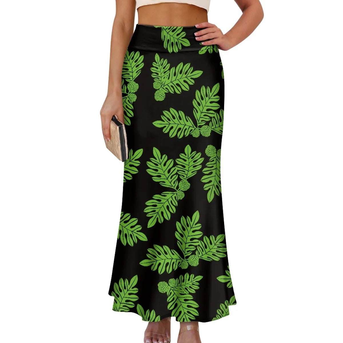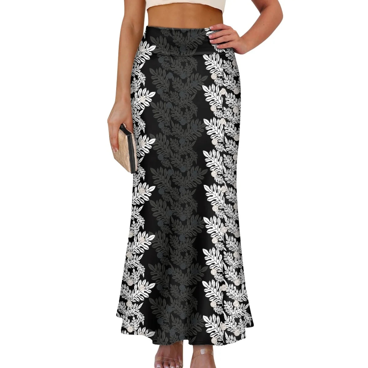 Schoensten Boutique Hawaiian Samoan Style Black Ulu Palaka Prints High Waist Long Skirt for Women