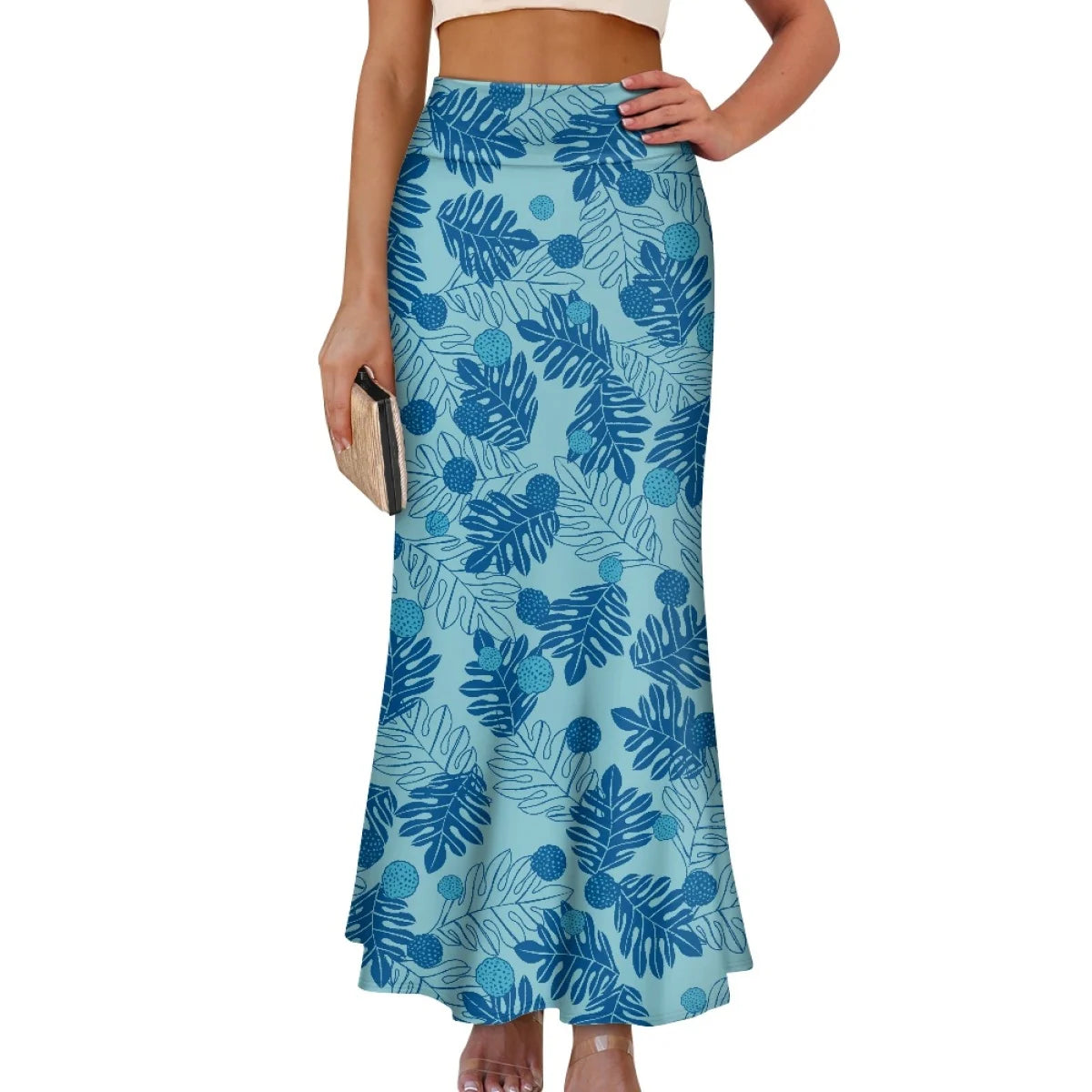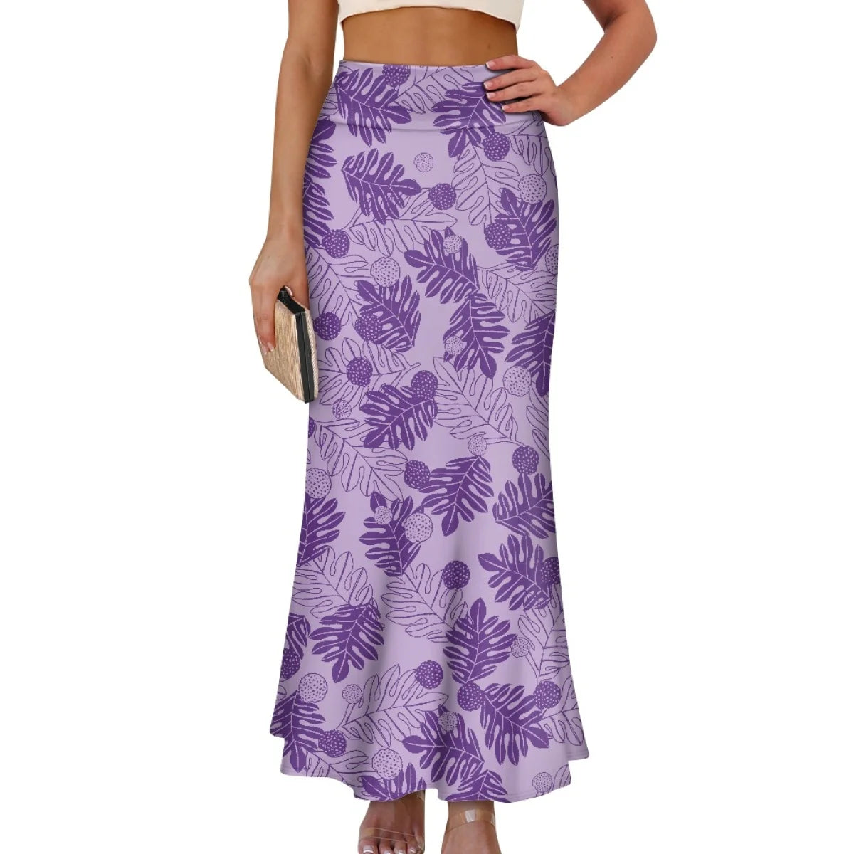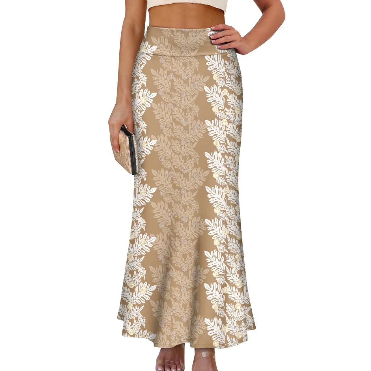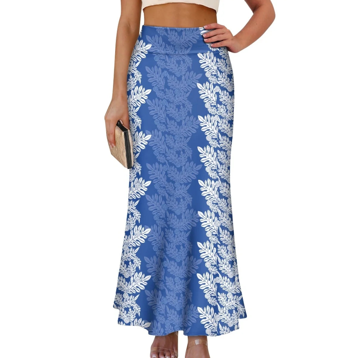 Schoensten Boutique Hawaiian Samoan Style Black Ulu Palaka Prints High Waist Long Skirt for Women