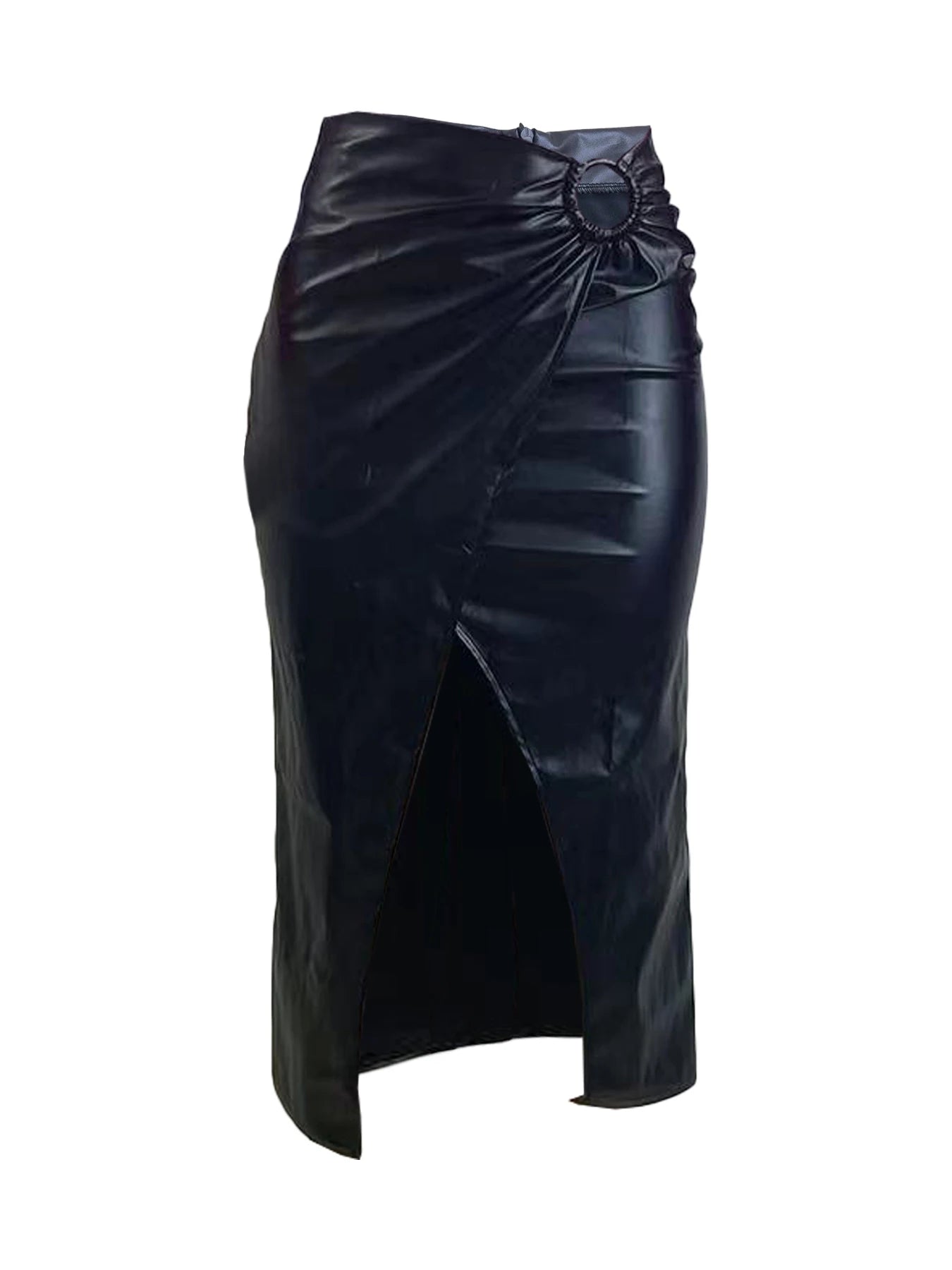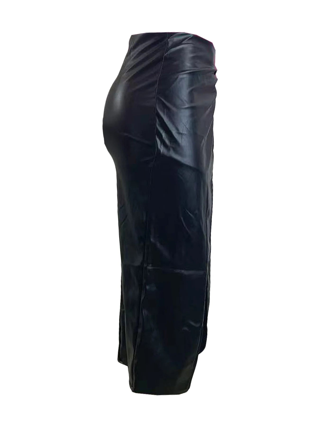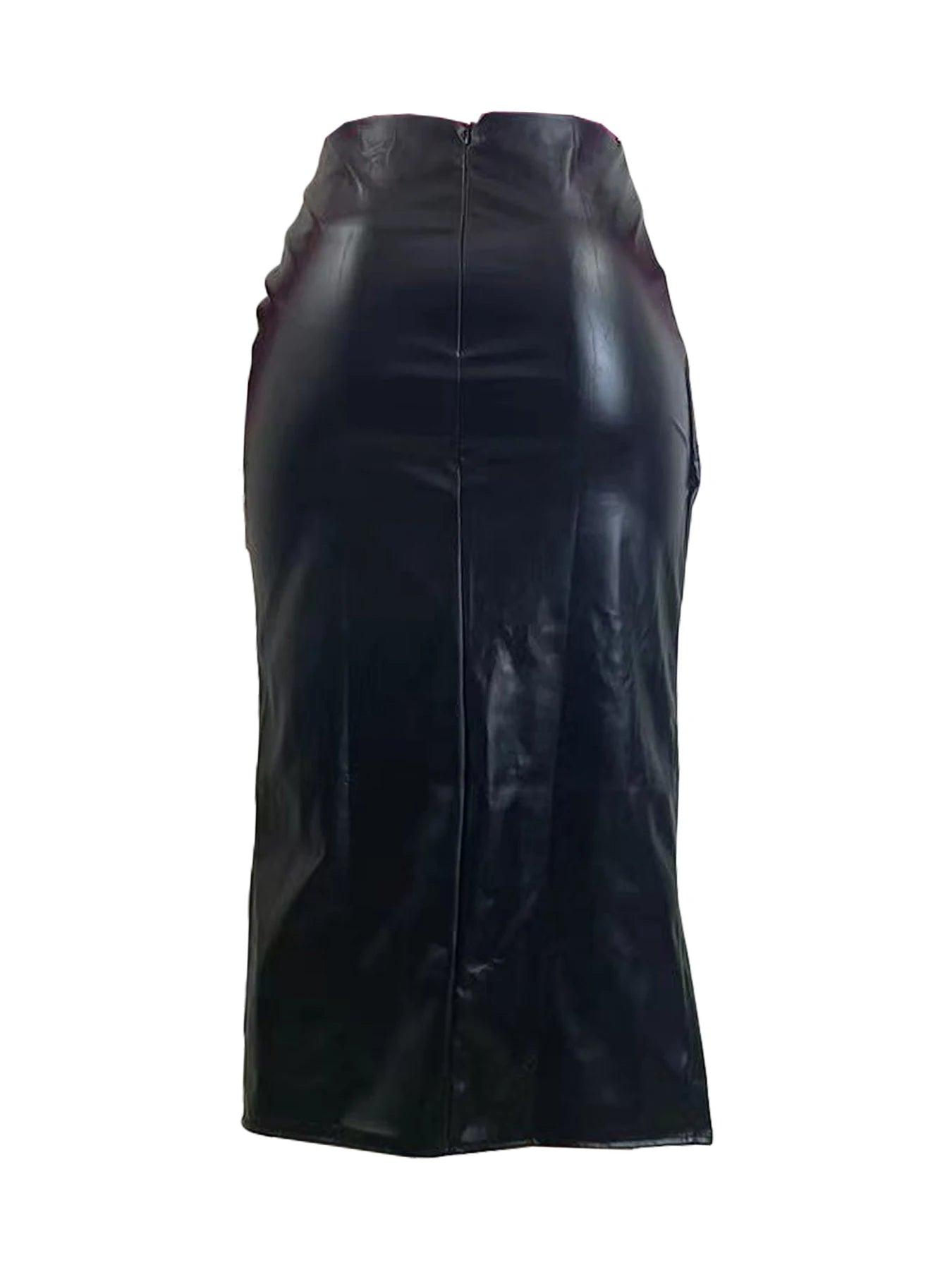 Schoensten Boutique High Waist Faux Leather Midi Skirts