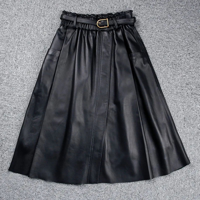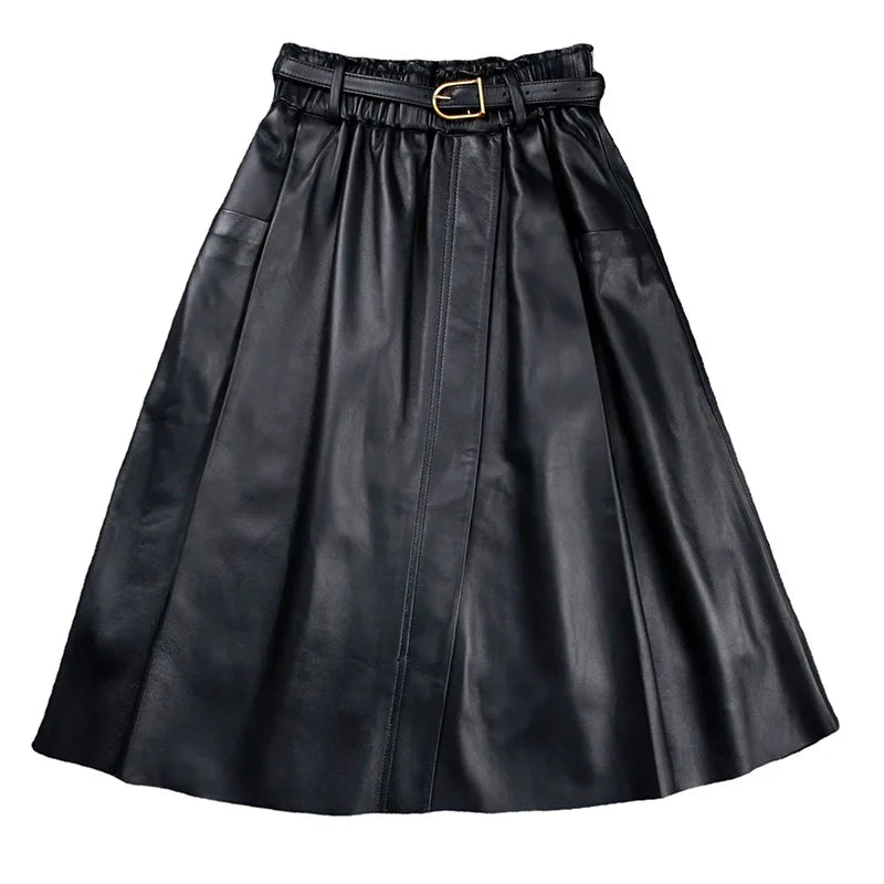 Schoensten Boutique Ladies Oversized Leather Long, High Waist Skirt for Women