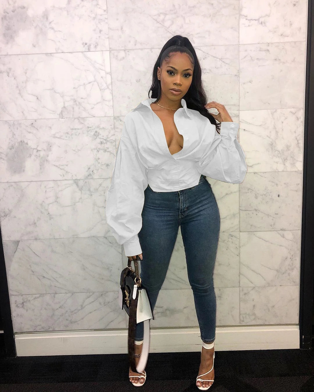 Schoensten Boutique Lantern Sleeve Spliced Women Blouses