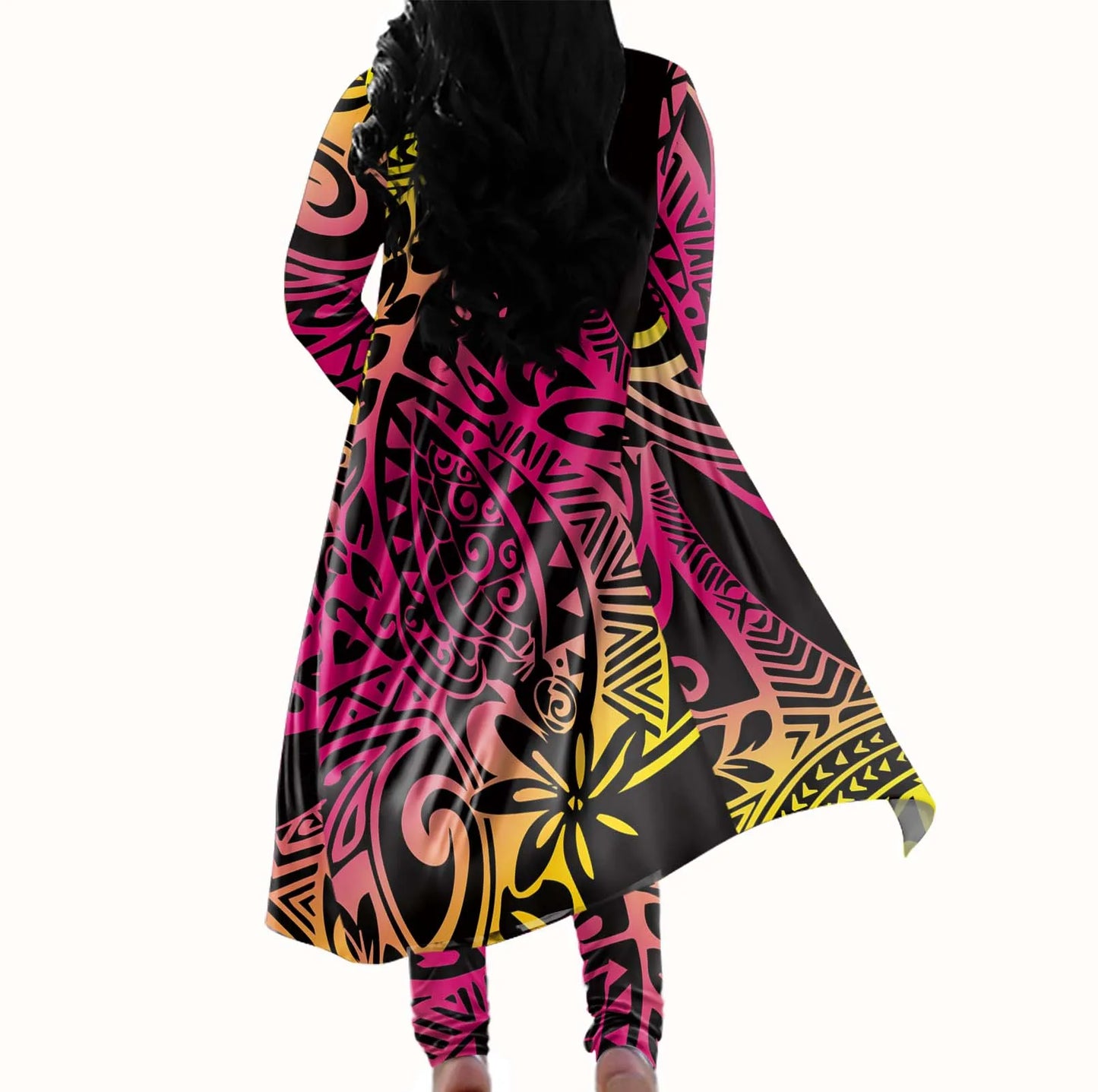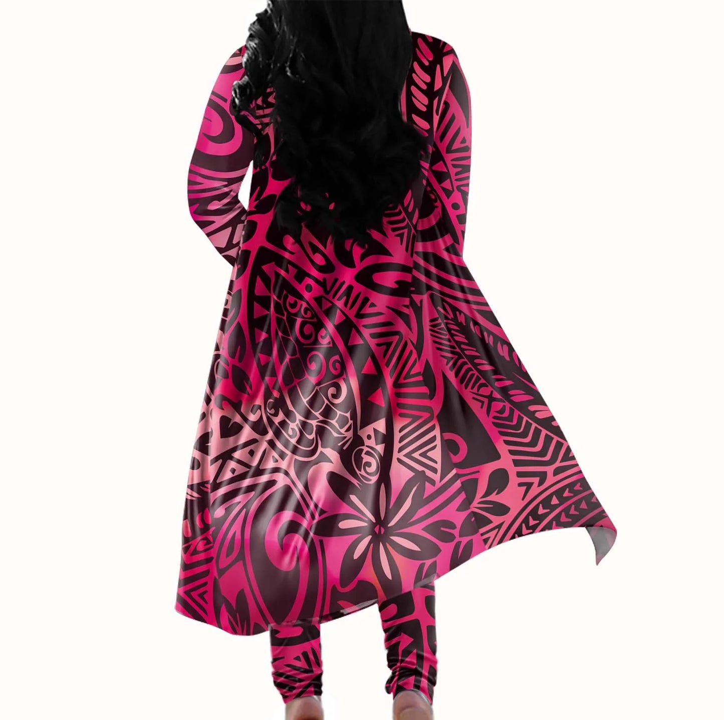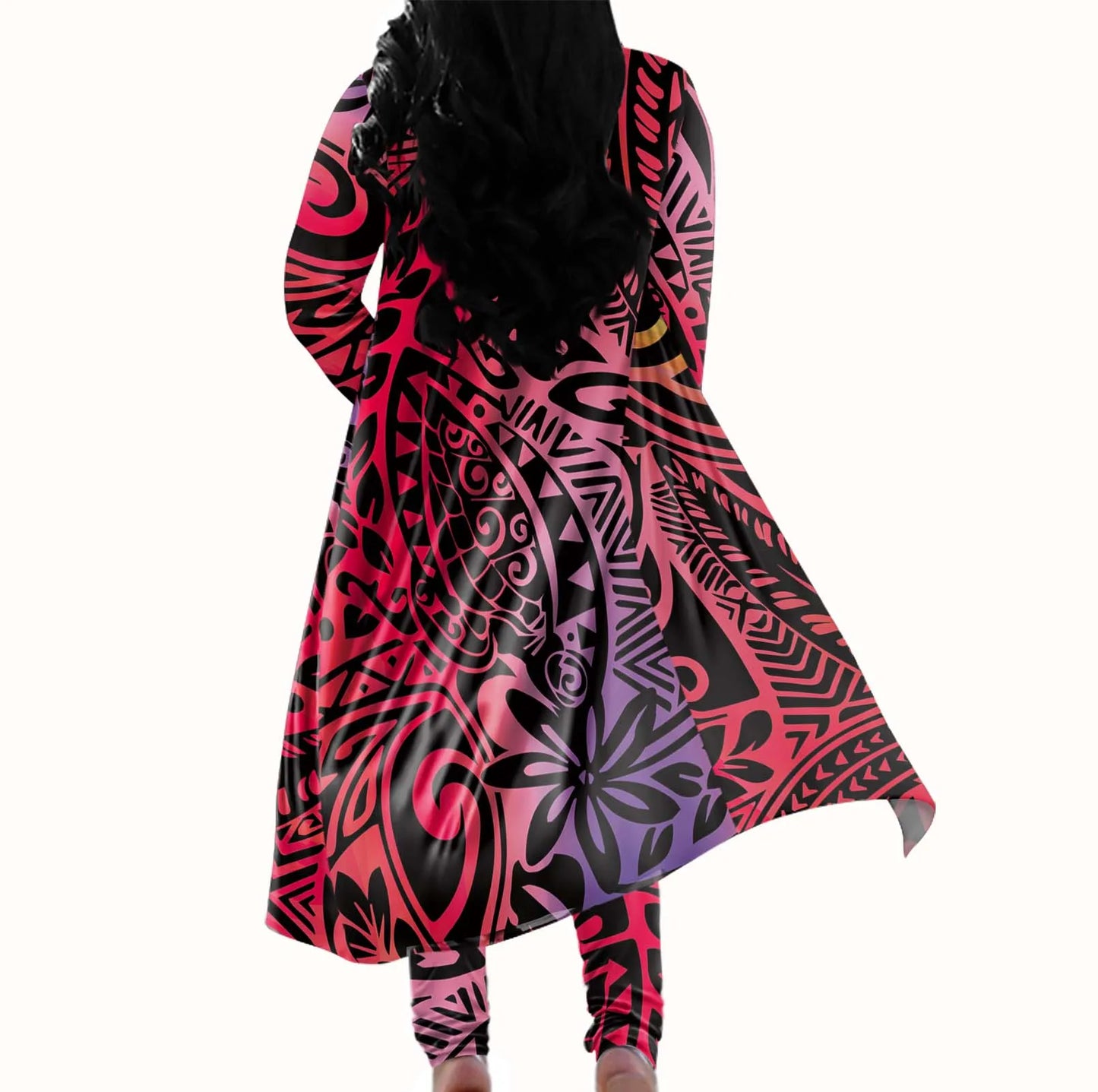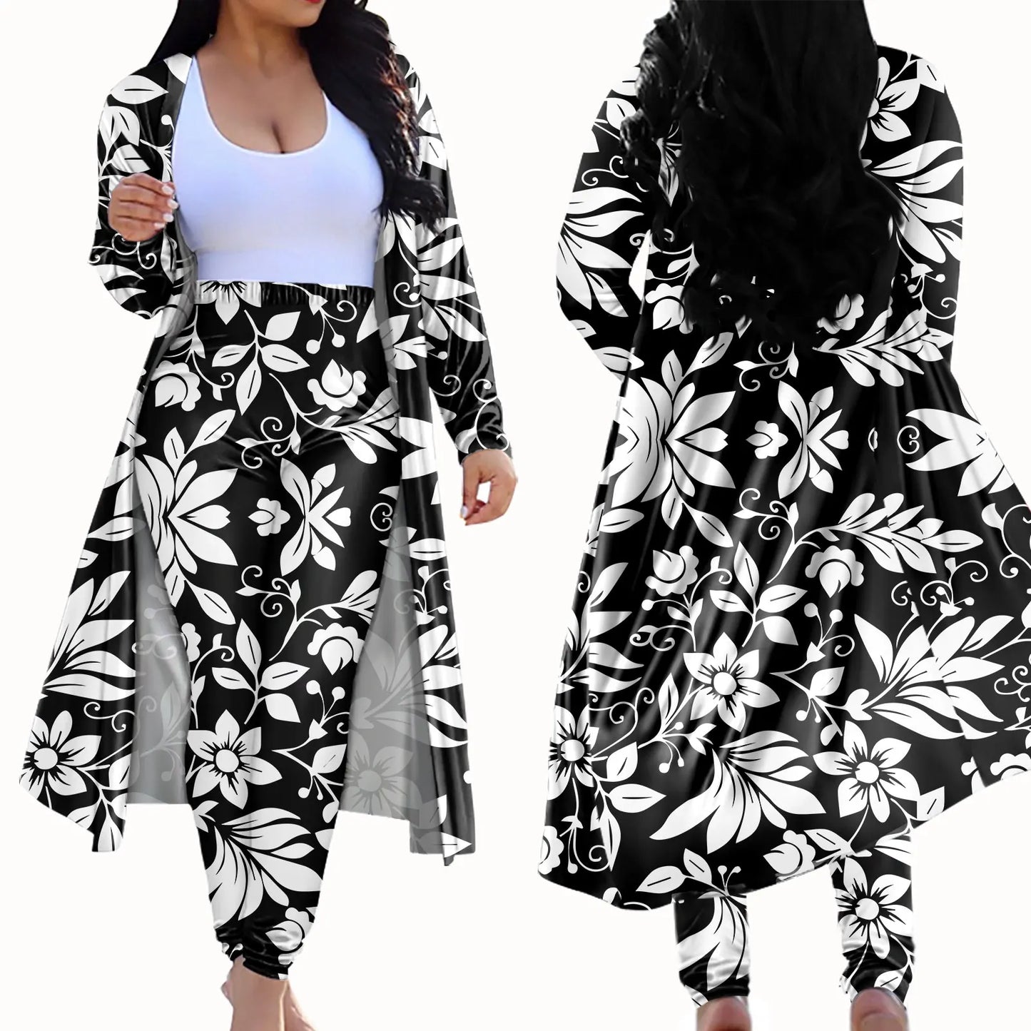 Schoensten Boutique Long Coat Cloak Legging Hibiscus Floral Print Robe Suits For Women