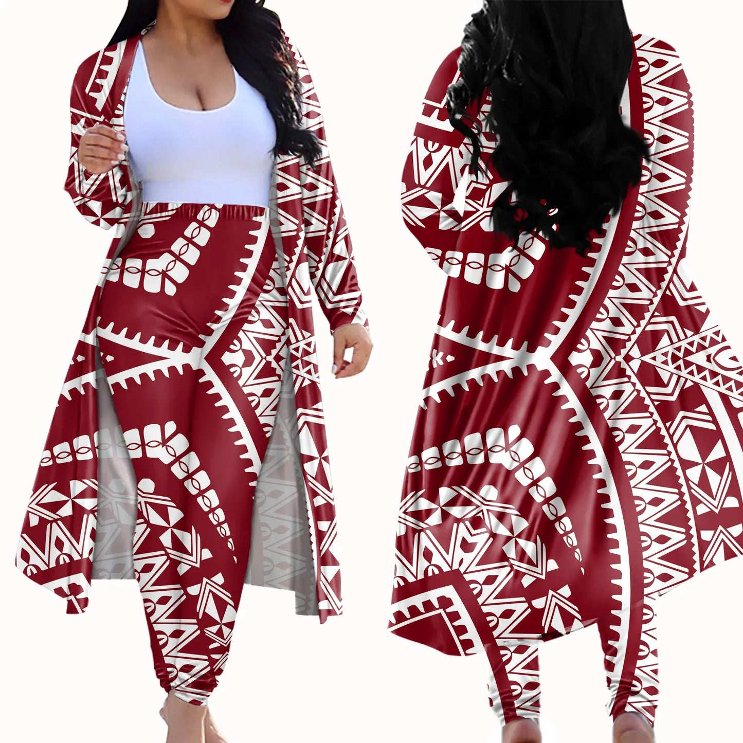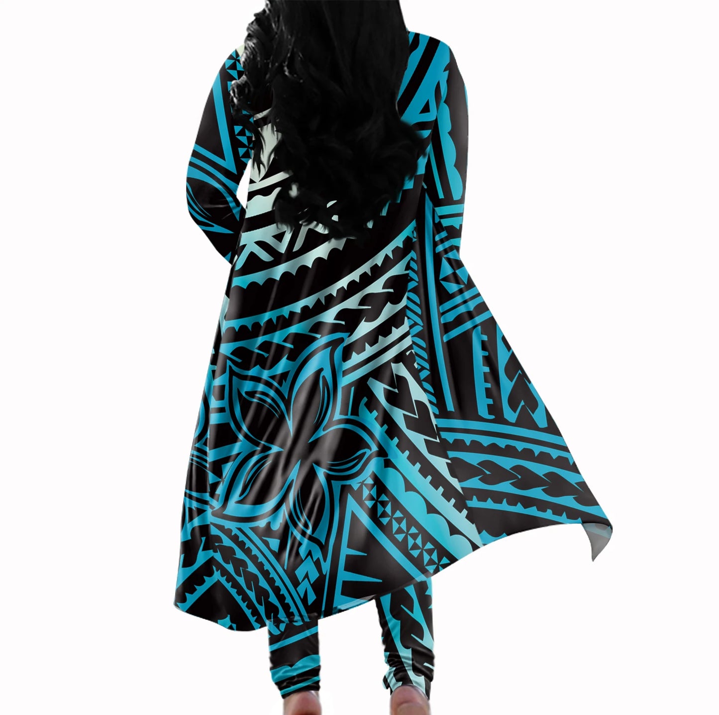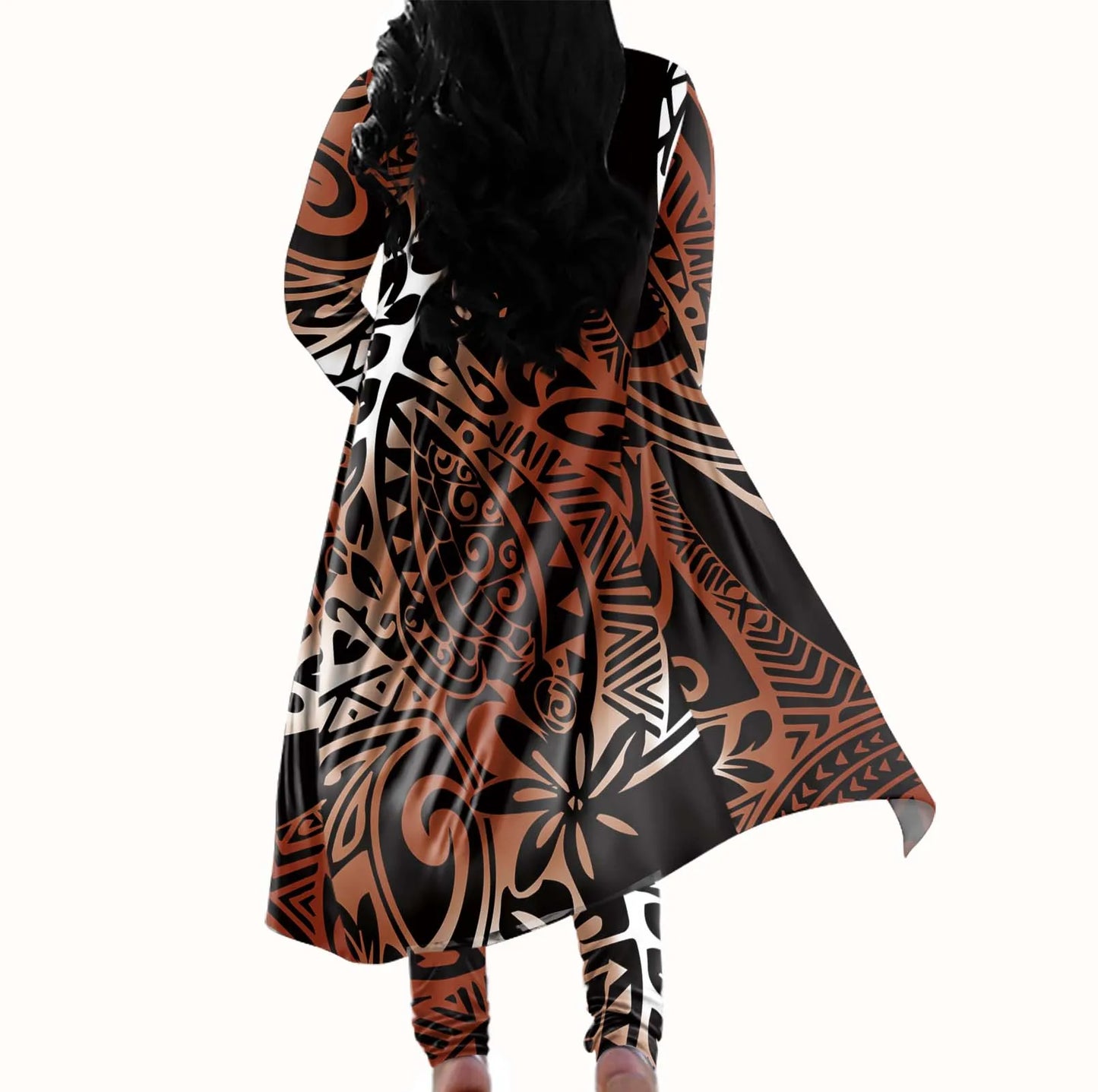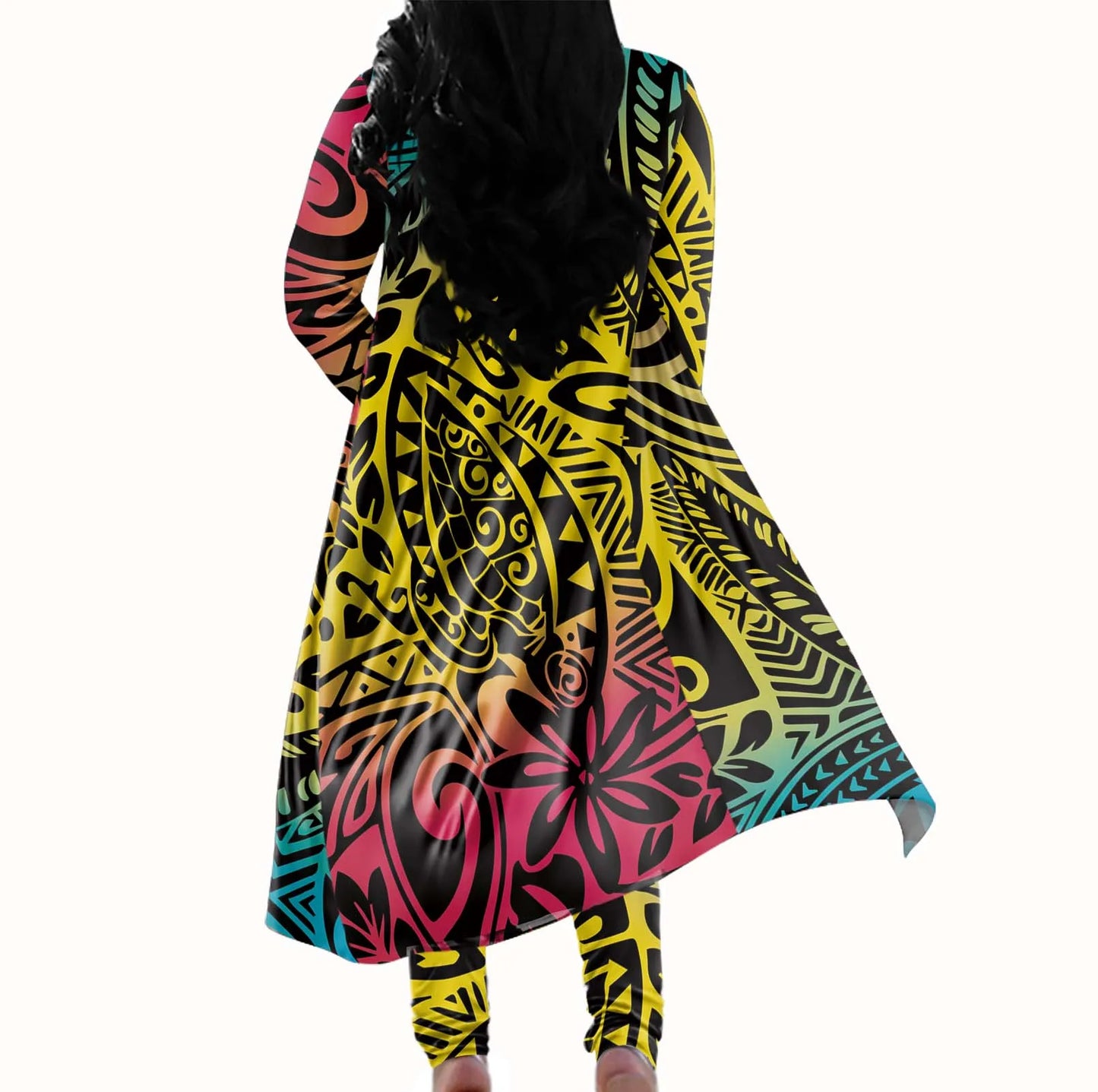 Schoensten Boutique Long Coat Cloak Legging Hibiscus Floral Print Robe Suits For Women