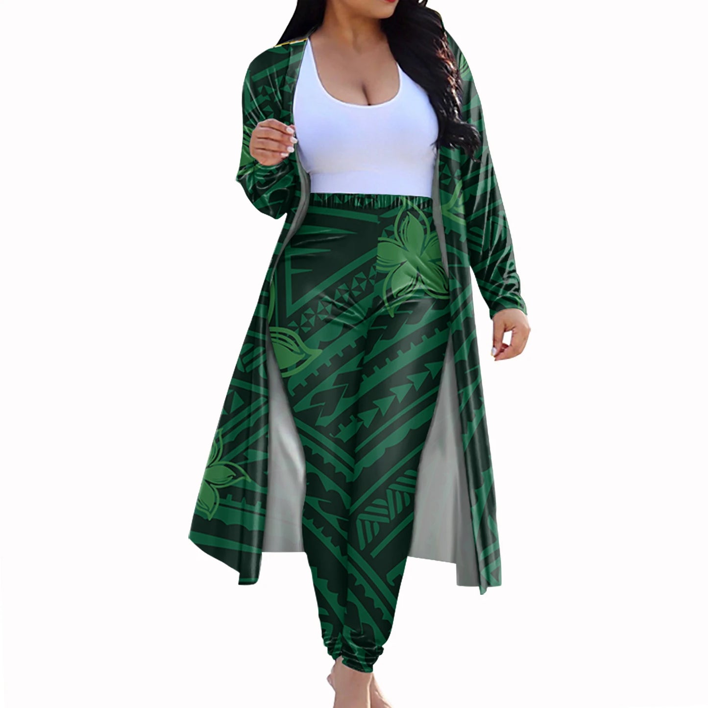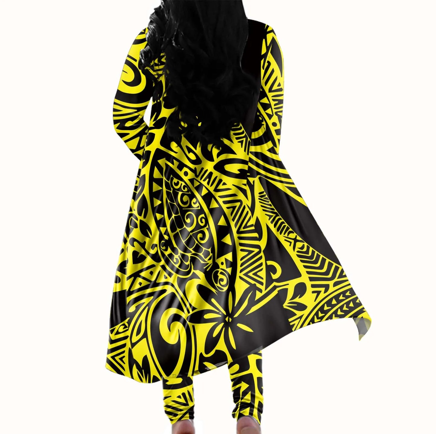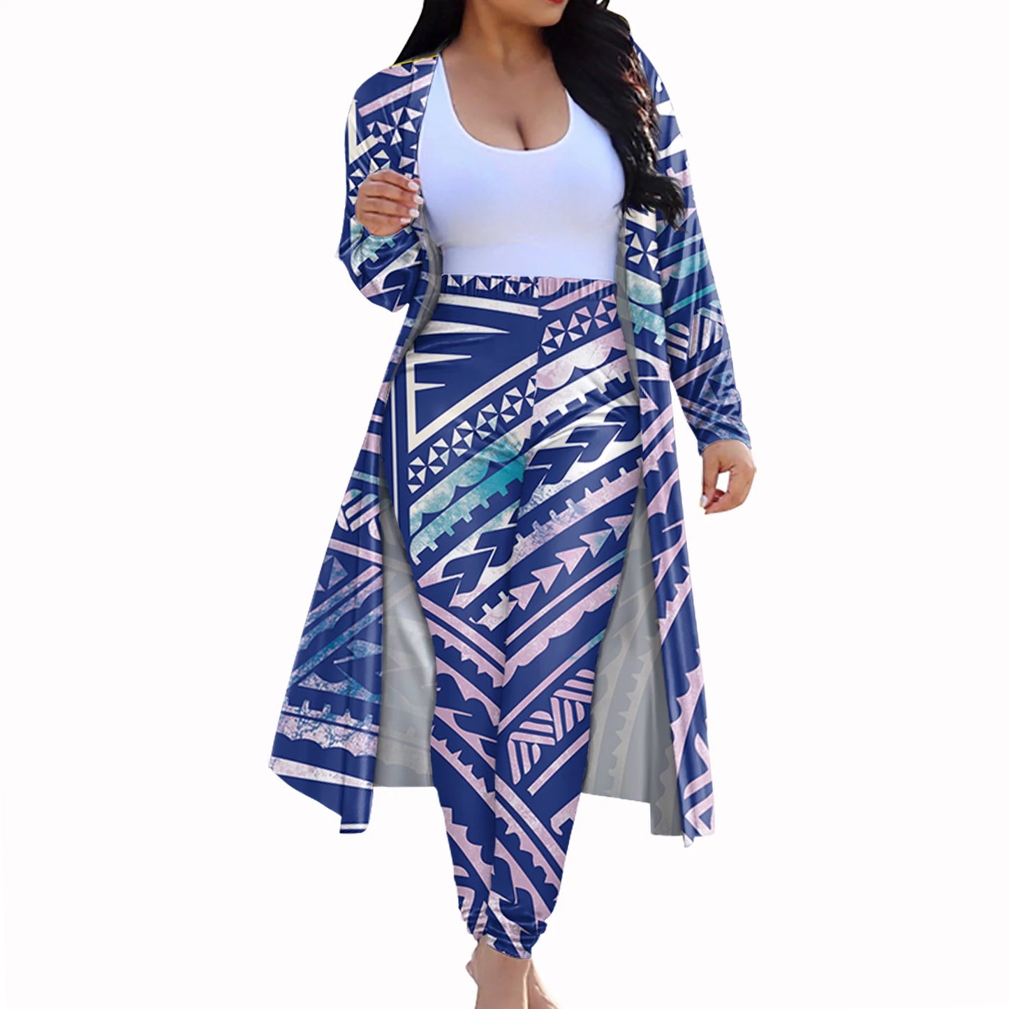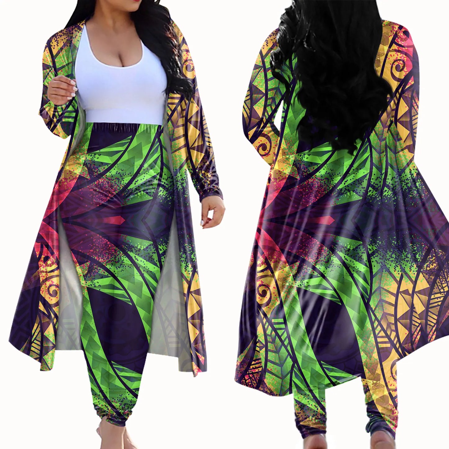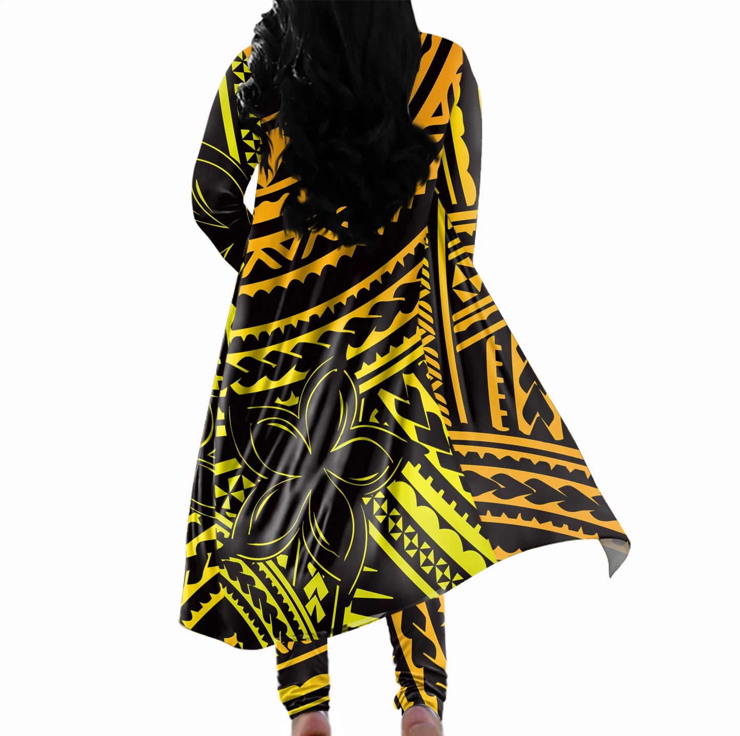 Schoensten Boutique Long Coat Cloak Legging Hibiscus Floral Print Robe Suits For Women