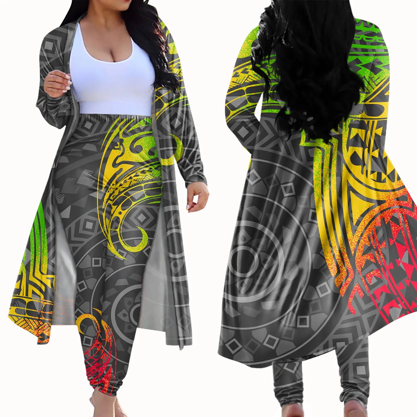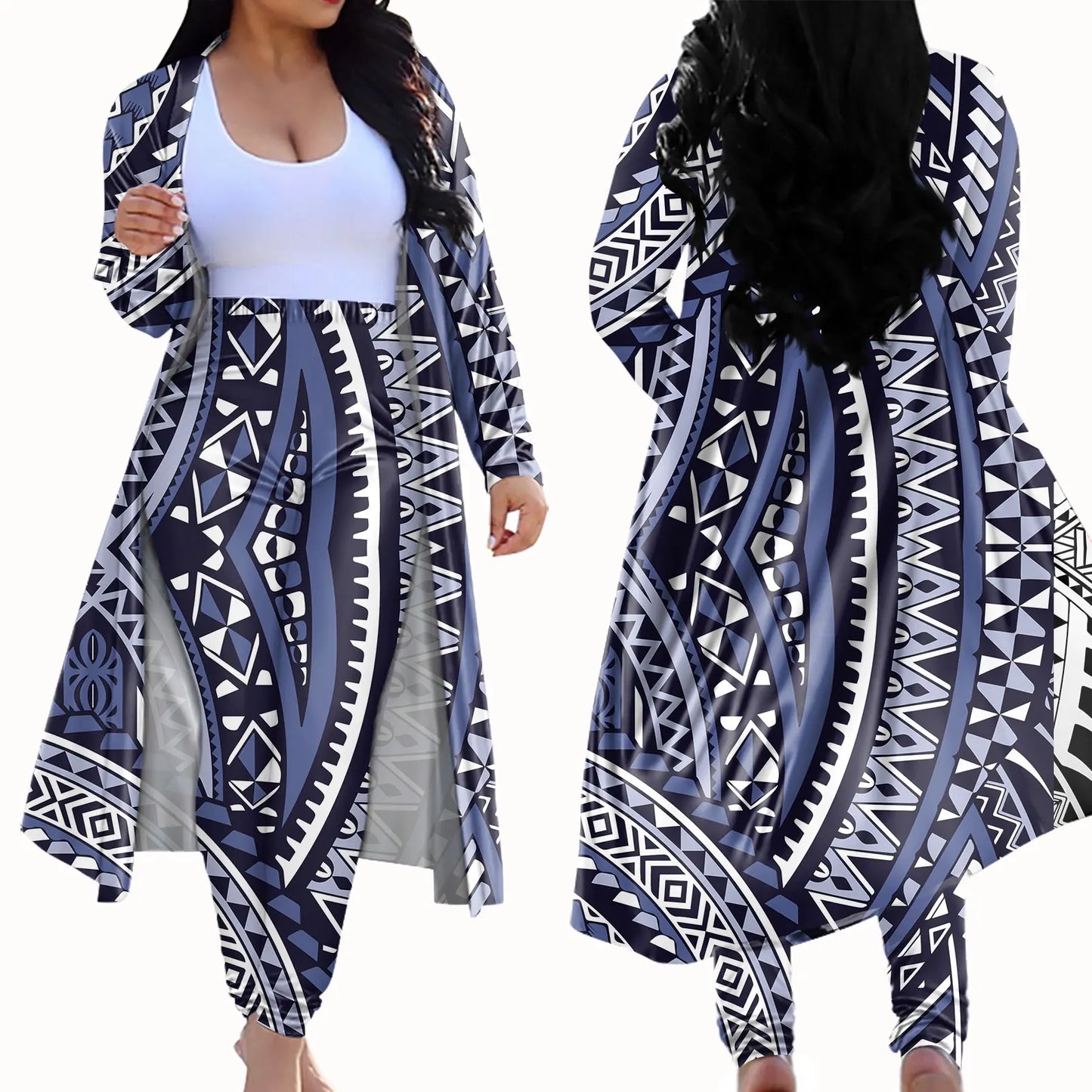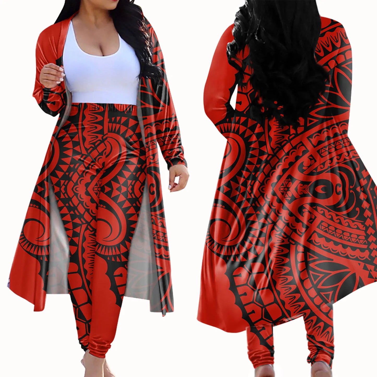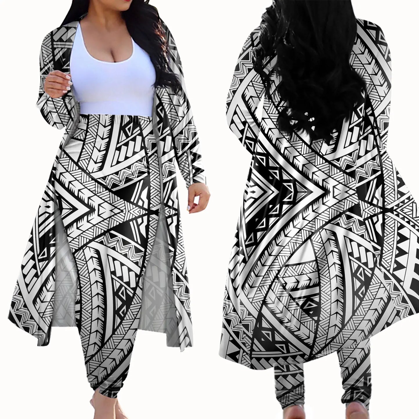 Schoensten Boutique Long Coat Cloak Legging Hibiscus Floral Print Robe Suits For Women