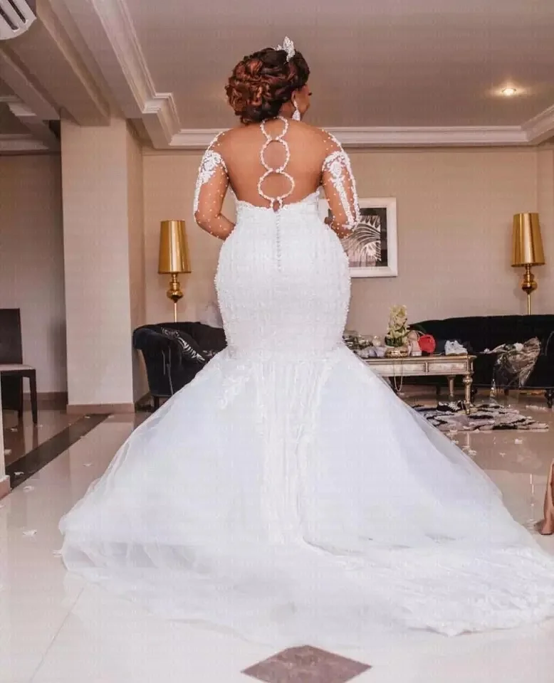 Schoensten Boutique Long Sleeve Lace Mermaid with Backless Design Flower Decoration