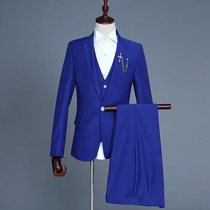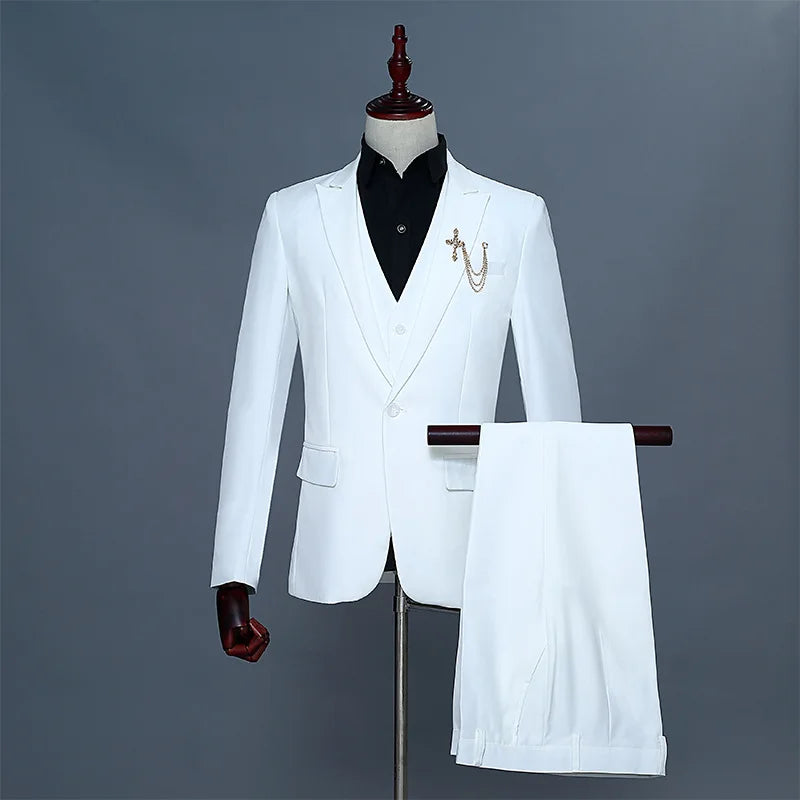 Schoensten Boutique Men's 3 Piece Groom Attire Pocket Chain African Black Suit