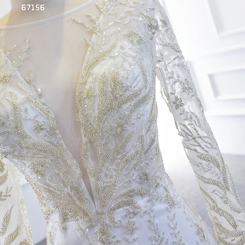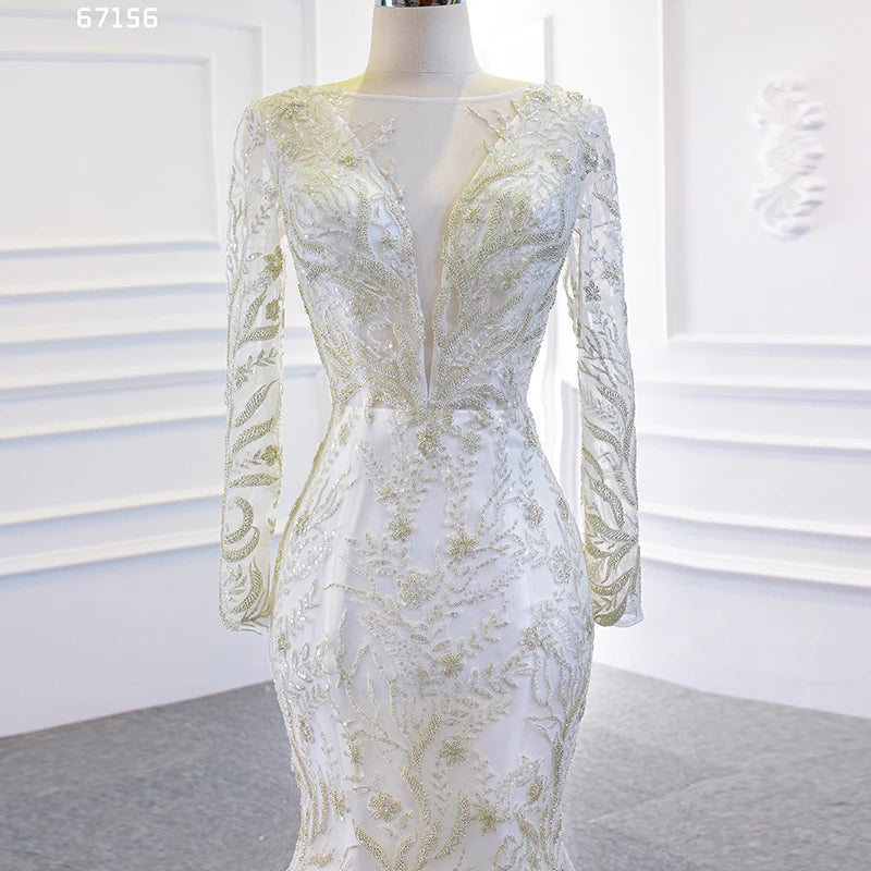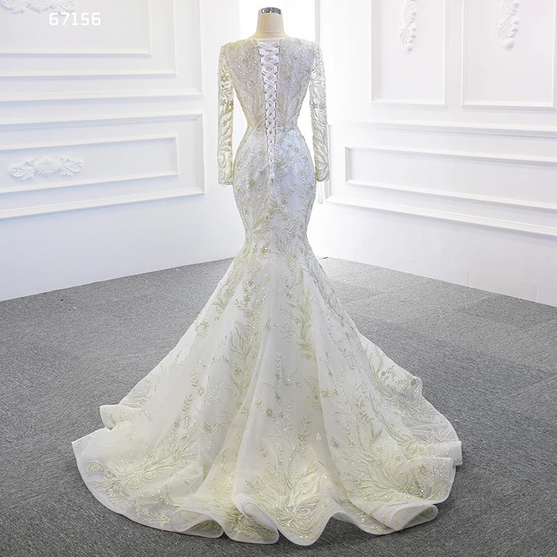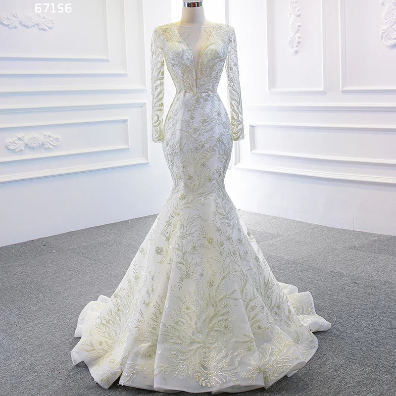 Schoensten Boutique Mermaid Long Sleeve Applique Wedding Dress With Detachable Train
