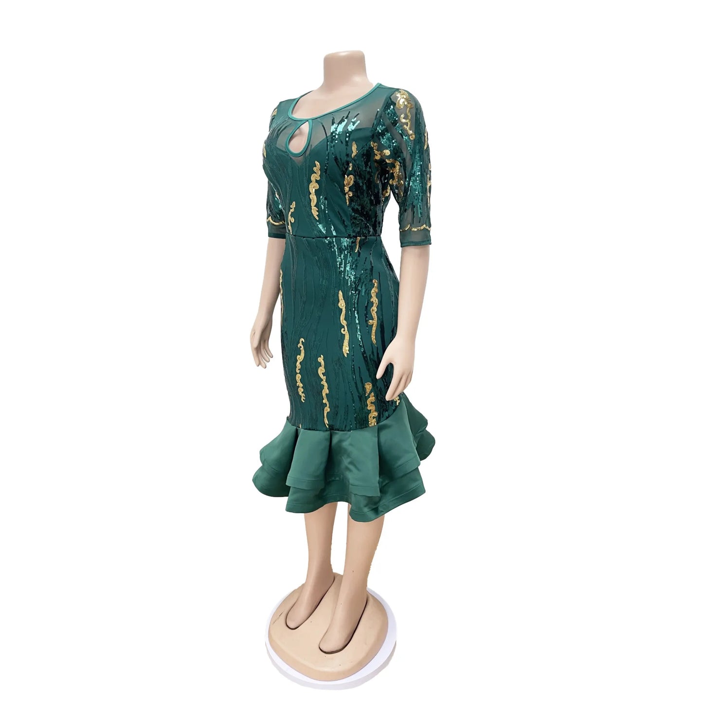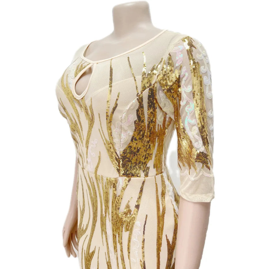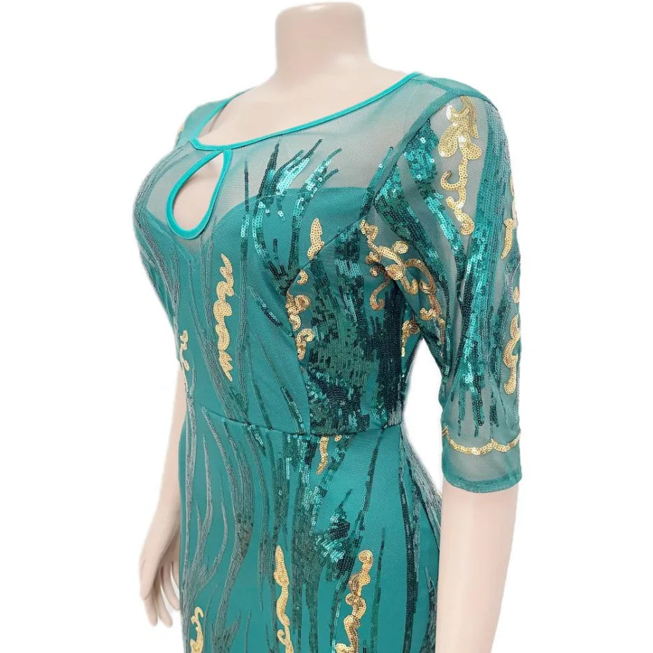 Schoensten Boutique Mesh See Through Sequined African Sheath Elegant Woman African Clothing