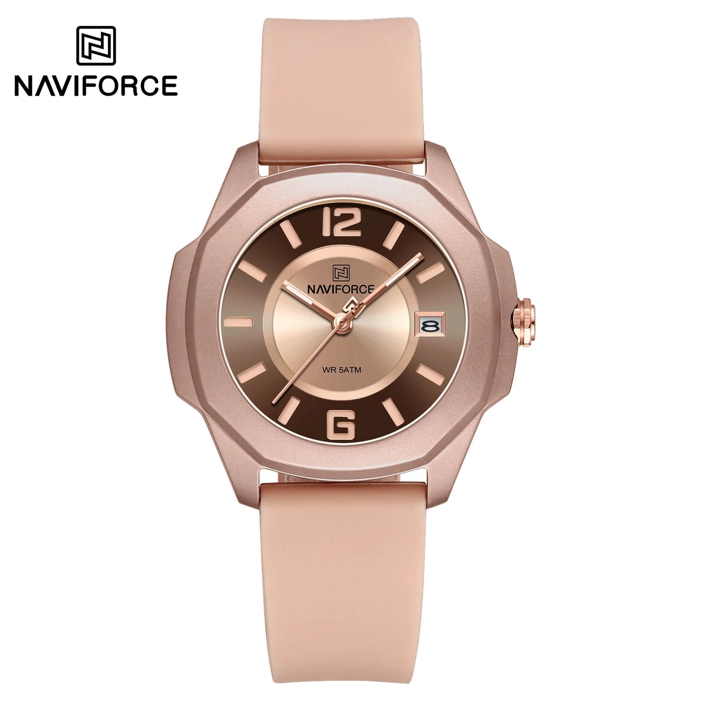 Schoensten Boutique NAVIFORCE Rose Gold Bracelet Silicone Strap Waterproof Quartz Watches