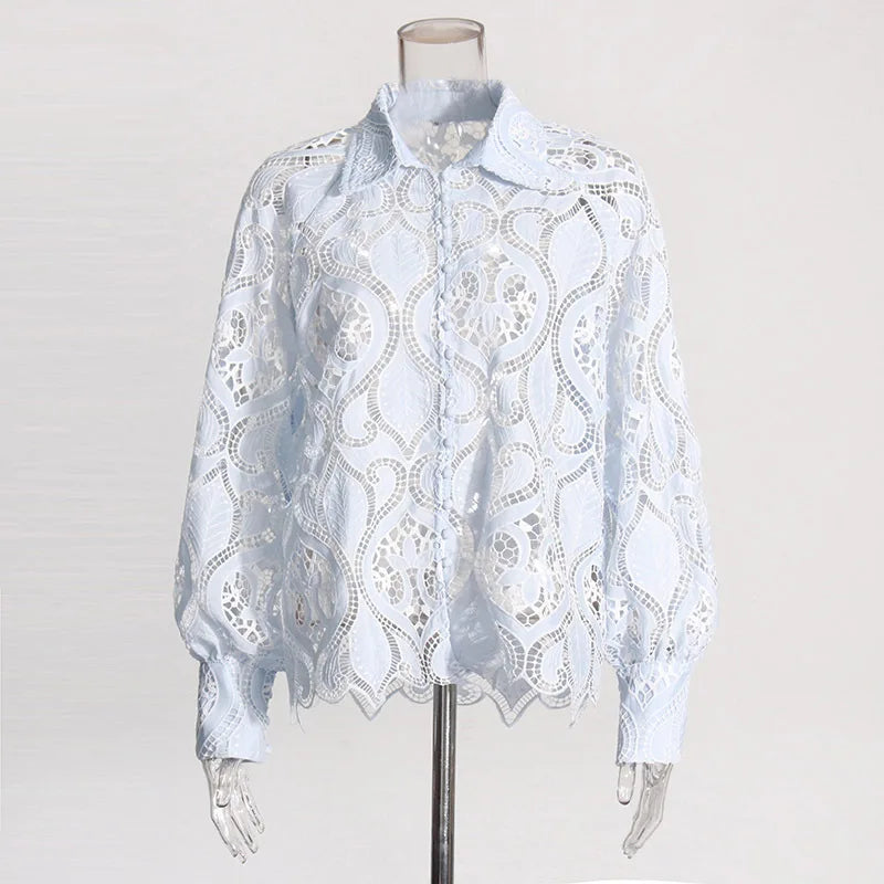 Schoensten Boutique OUDINA Elegant Casual Hollow Lace Blouses for Women
