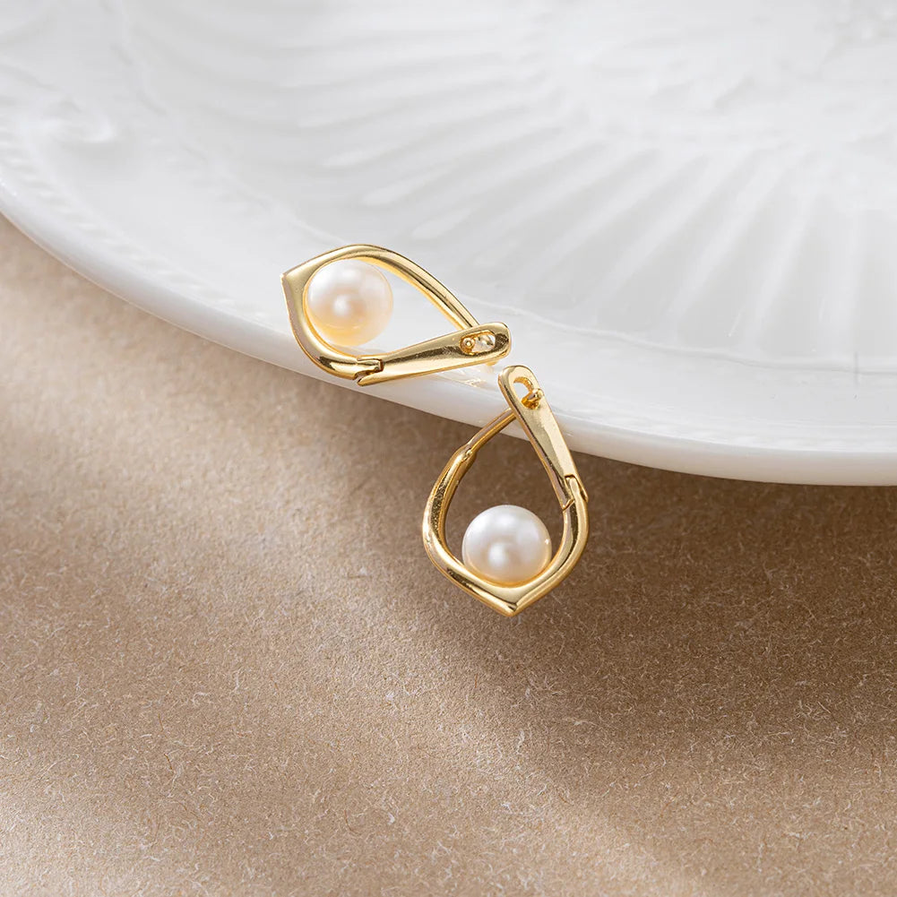 Schoensten Boutique RINNTIN Gold Pearl Earrings Sterling Simple Hypoallergenic Hoop Earrings Jewelry