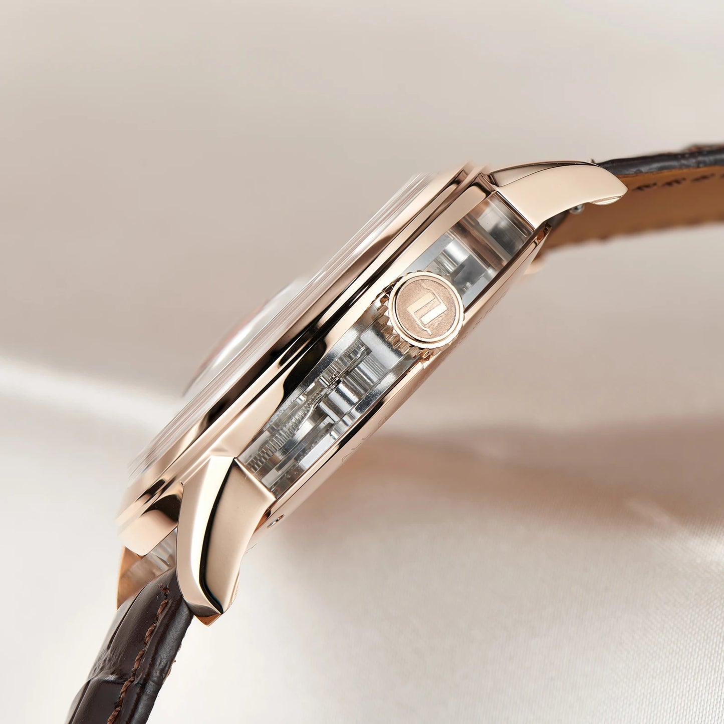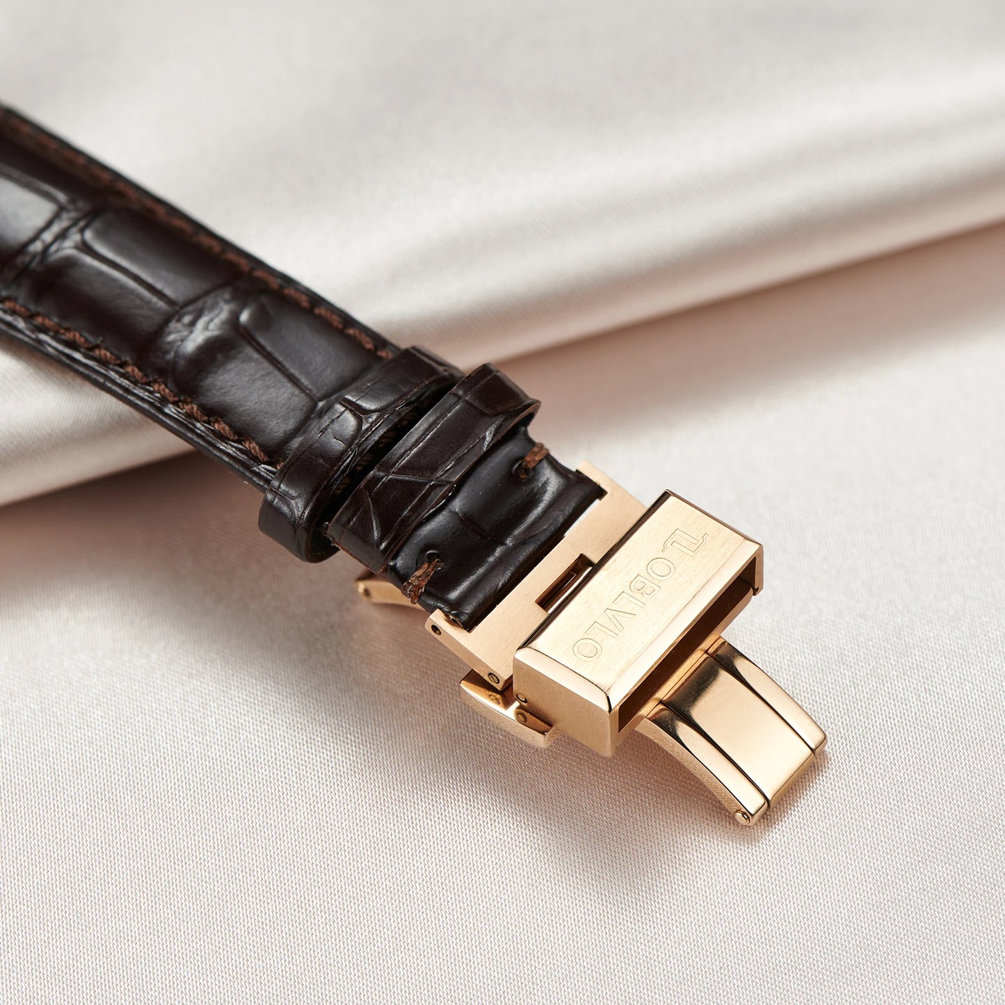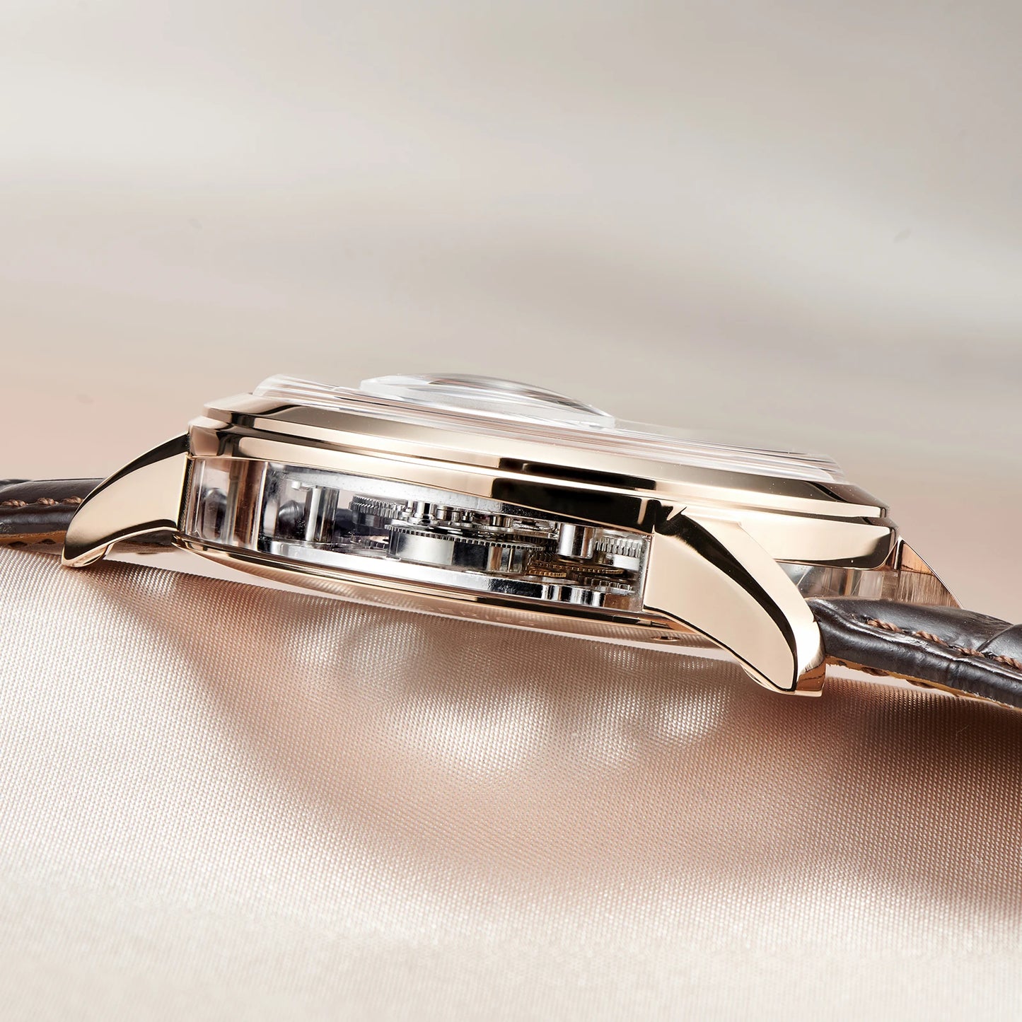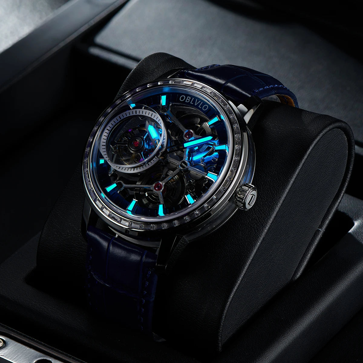 Schoensten Boutique Tourbillon Men's Mechanical Watches With Genuine Leather Diamond Bezel Steel Skeleton
