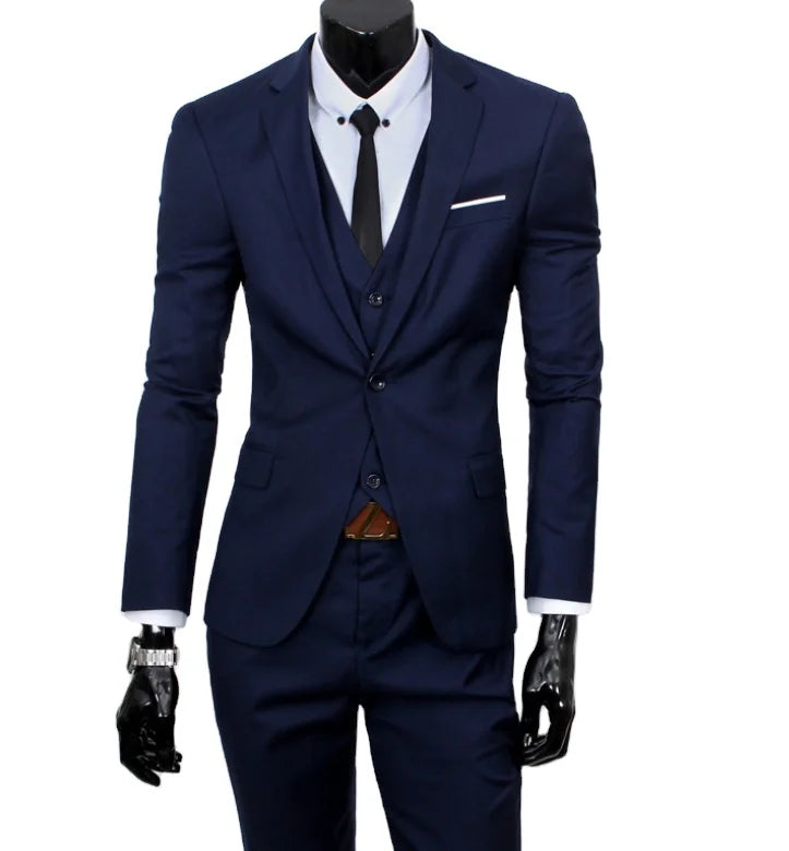 Schoensten Boutique V-neck Elegant 3 Piece Slim Fit Suits for Men