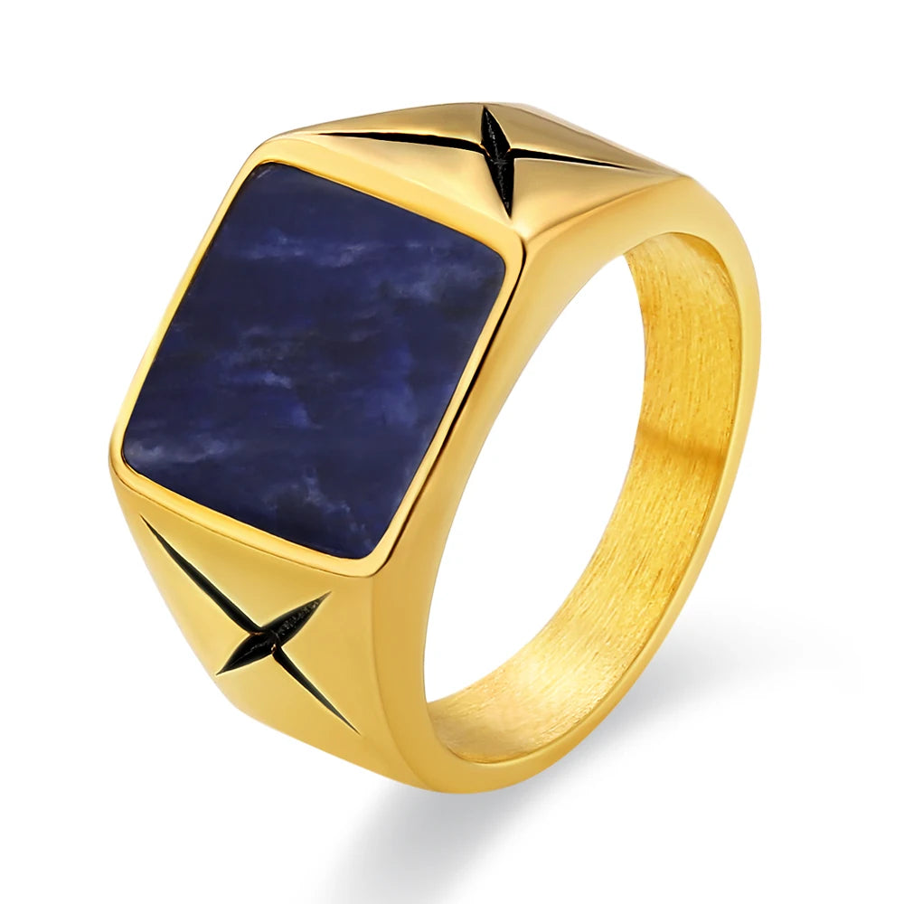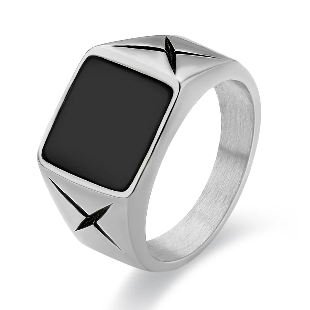 Schoensten Boutique White Gold 18K Plated Square Black Onyx Rings for Men