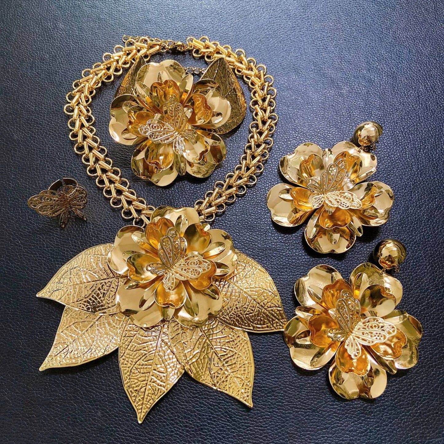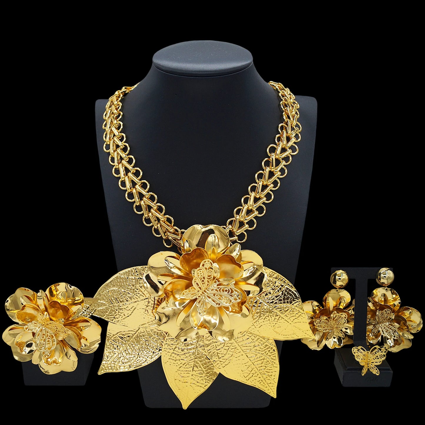Schoensten Boutique Yulaili Luxury African Big Flower Wedding Jewellery Necklace Set
