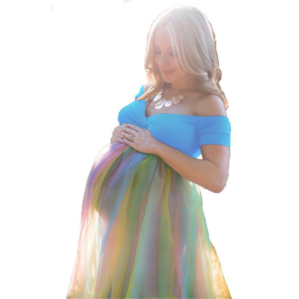 - Product name: Rainbow Mesh Maternity Dress Photo Shooting Pregnant Women Maxi Gown