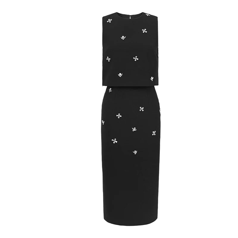 Two Pieces Set Custom Design Rhinestone Solid Crop Sleeveless Top and Waist-Tight Skirt Lady's Set