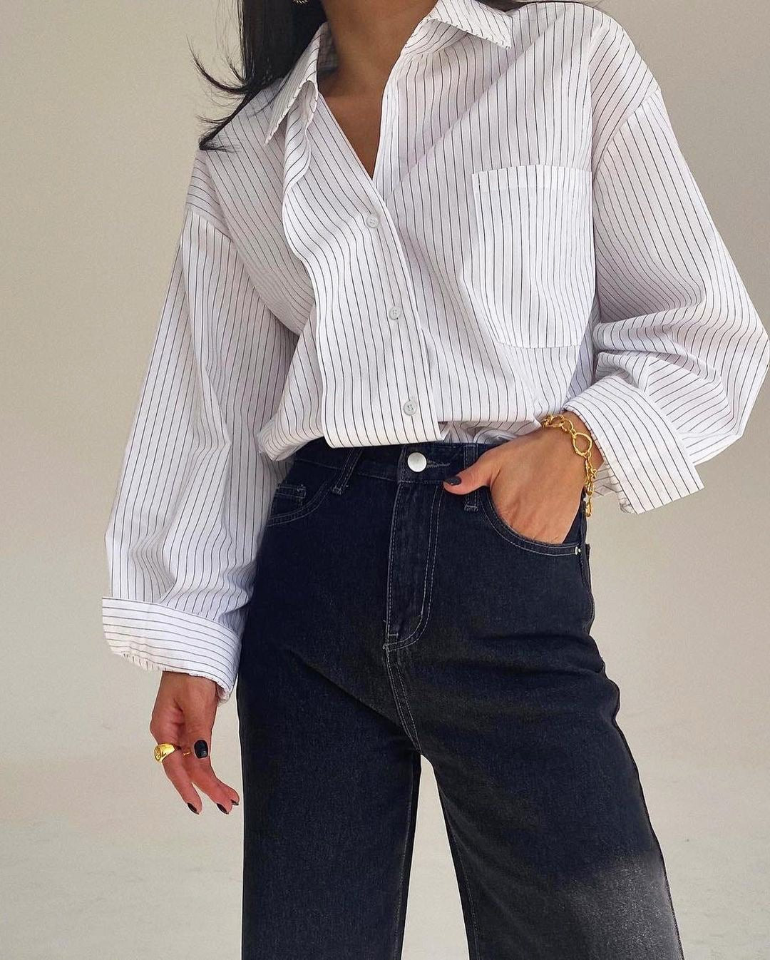 V neck vertical stripe long sleeve